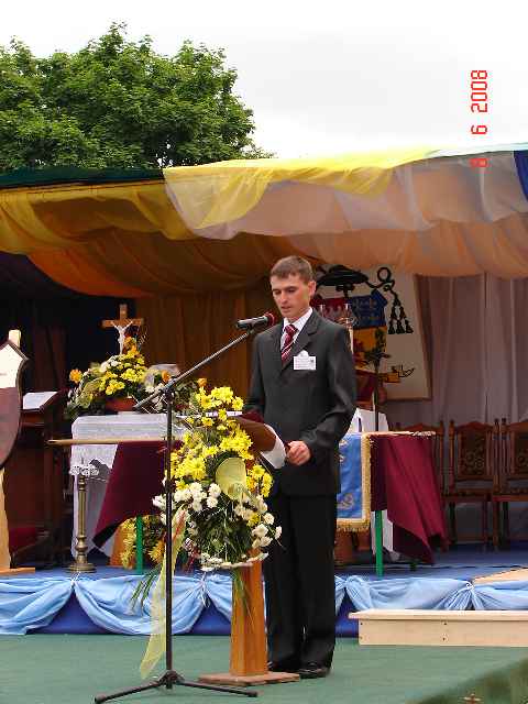 Po uroczystym wystąpieniu wójta Gminy Potok Wielki Jerzego Pietrzyka oraz dyrektora szkoły Jana Brzozowskiego uczniowie wierni staropolskim tradycjom powitali obecnych polskim tańcem narodowym – polonezem. Uroczystość odbywała się na placu obok szkoły i przypominała polskie spotkania z Papieżem podczas jego pielgrzymek do Ojczyzny. Uroczystość uświetniła: