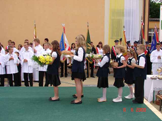 W dniu 8 czerwca 2008 r. odbyło się uroczyste wręczenie sztandaru naszej szkole oraz nadanie im. Jana Pawła II Publicznej Szkole Podstawowej i Publicznemu Gimnazjum. Do tego dnia przygotowywano się blisko trzy lata, od 16 października 2005 r. dyrekcja, grono pedagogiczne, dzieci i młodzież zapragnęli, aby patronem naszej szkoły był właśnie Jan Paweł II. Ta niedzielna uroczystość łączyła w sobie: