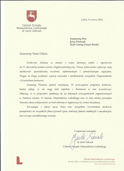 W dniu 9 czerwca 2014 r. w Zespole Szkół w Potoczku odbyła się czwarta edycja Diecezjalnego Konkursu Pieśni Patriotyczno – Religijnej pod hasłem „Całe to duchowe dziedzictwo, któremu na imię Polska raz jeszcze przyjmijcie z wiarą, nadzieją i miłością”. Honorowy patronat nad uroczystością w tym roku objęli: Biskup Krzysztof Nitkiewicz Ordynariusz Diecezji Sandomierskiej, Krzysztof Babisz Lubelski Kurator Oświaty. Ks. Kanonik Stanisław Piasecki Dziekan Dekanatu Modliborzyce oraz Jerzy Pietrzyk Wójt Gminy Potok Wielki