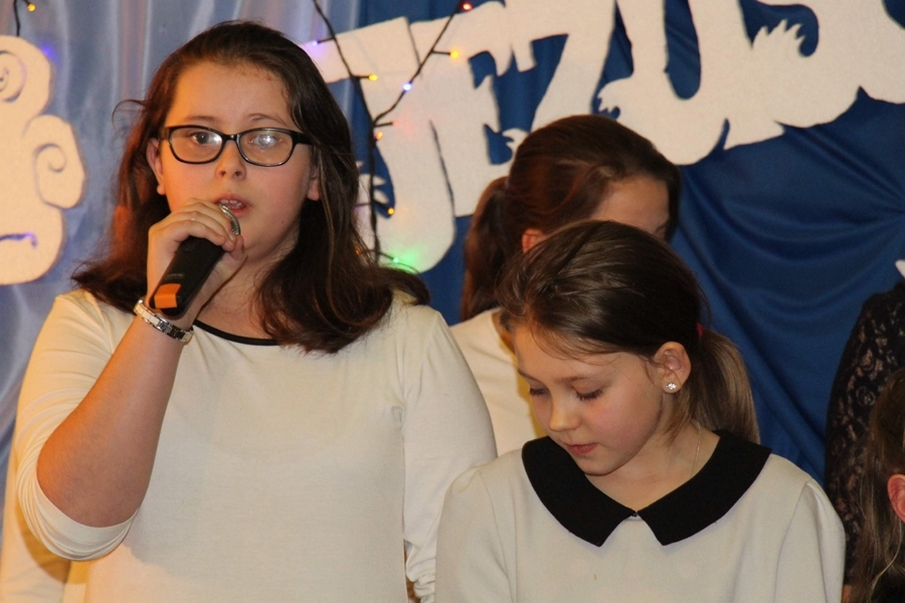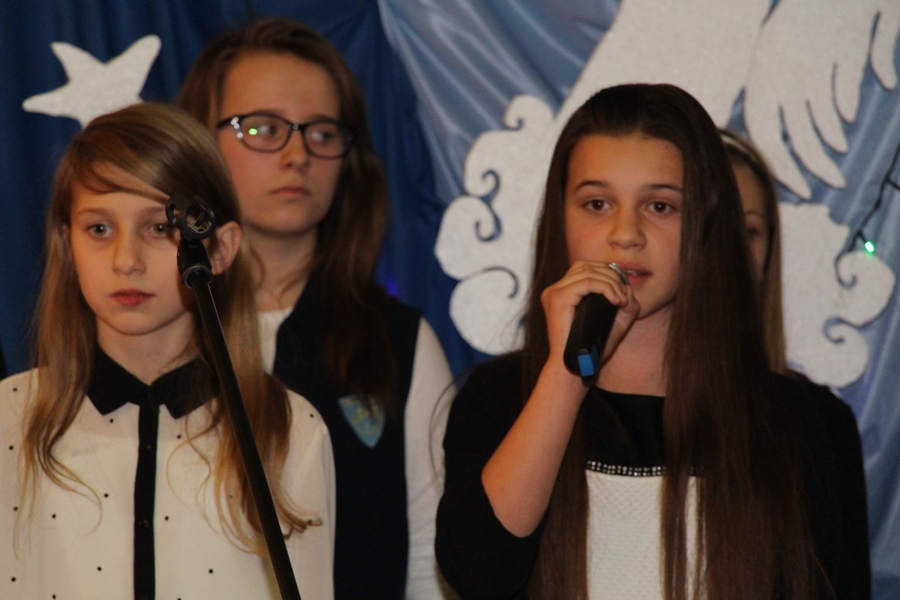 Ze sceny potockiej szkoły niósł się radosny śpiew w wykonaniu artystów, zarówno tych młodszych, jak i starszych, bo tego wieczoru oprócz dzieci i młodzieży z gminnych szkół, śpiewały także "Stanianki" i seniorzy z miejscowego "Klubu Seniora".