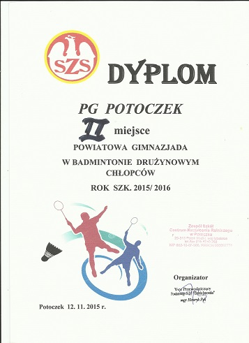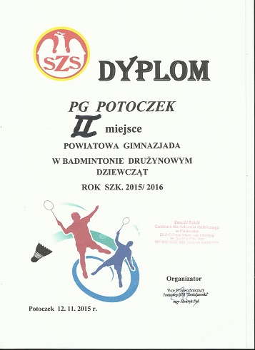 W Potoczku na hali Centrum Kształcenia Rolniczego 12.11.2015r. rozgrywane były mistrzostwa powiatu janowskiego w badmintonie drużynowym dziewcząt i chłopców za rok szkolny 2015/2016. Nasza gimnazjum reprezentowali: drużynę dziewcząt Amelia Taracha z I g, Justyna Sulowska z II g.