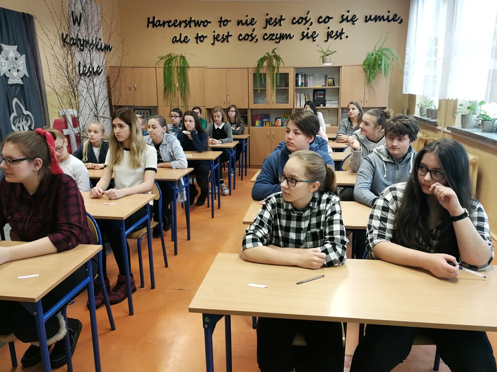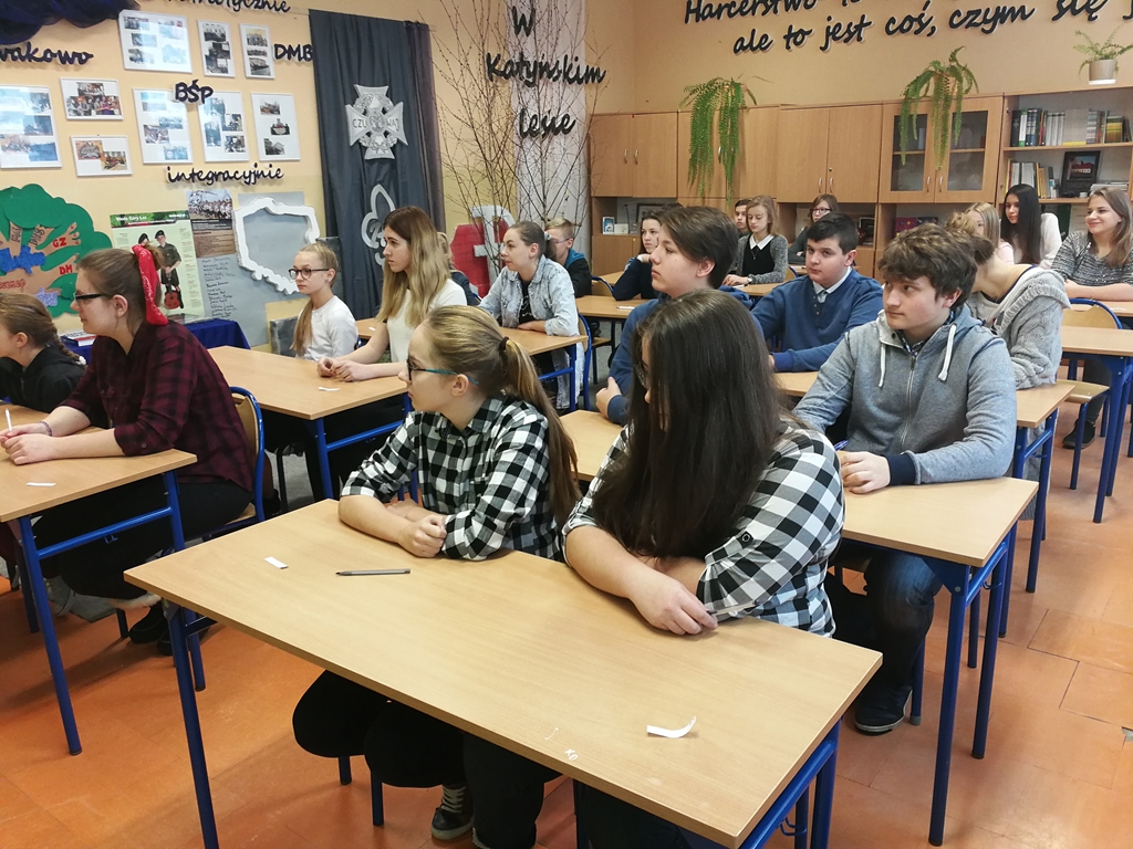 Etap gminny poprzedziły eliminacje szkolne, które odbyły się 28.11 br. Na podstawie testu przeprowadzonego w szkole wyłoniono następujące osoby: Wiktoria Skiba IIIg, Klaudia Kolano IIIg, Dorota Brzozowska IIg, Julia Lenart IIg, Milena Zrębska VII, Marcelina Dudek VII, Agata Abram VI, Katarzyna Pęk V.