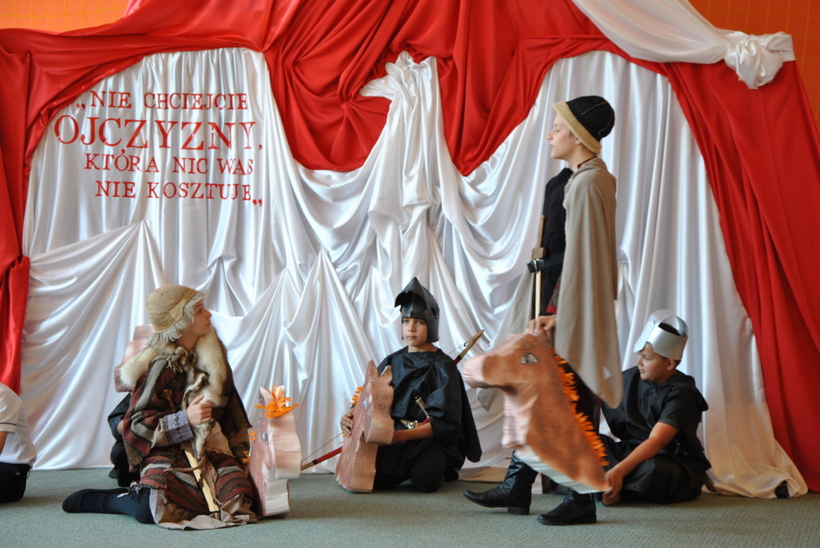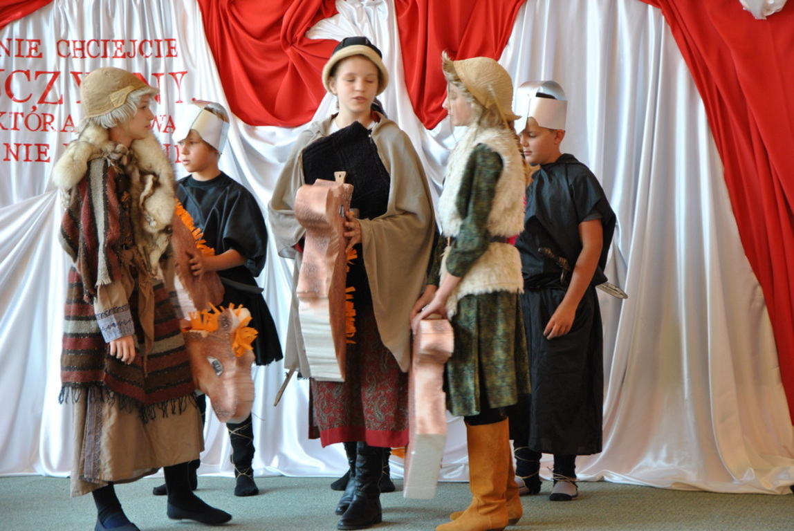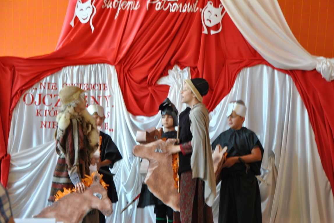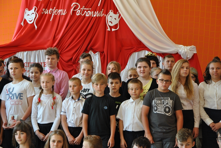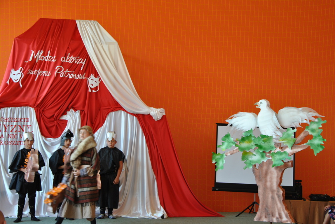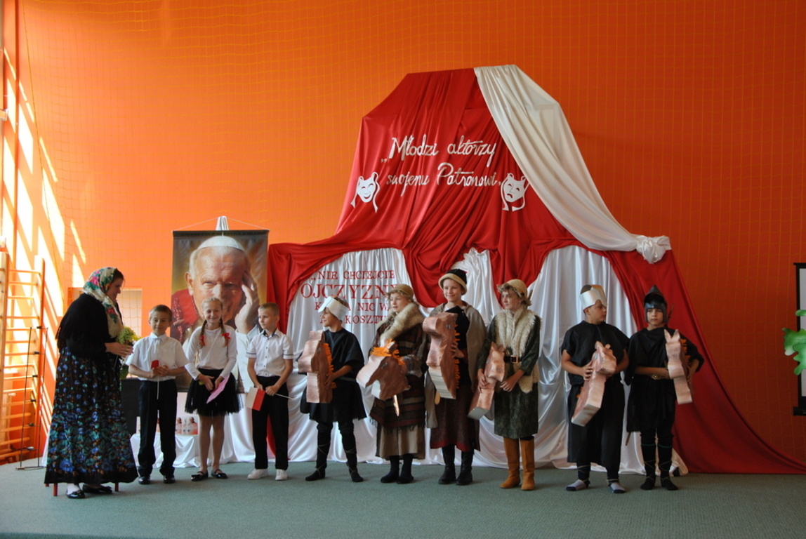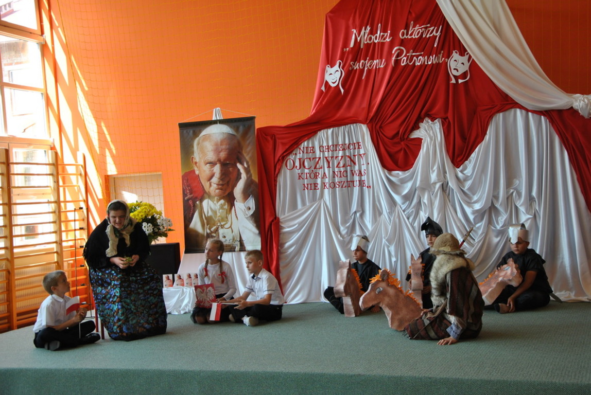 Dnia 24 maja 2018 roku uczniowie naszej szkoły brali udział w XIII Diecezjalnych Spotkaniach Teatralnych SZKÓŁ NOSZĄCYCH IMIĘ JANA PAWŁA II pod hasłem Młodzi aktorzy swojemu Patronowi. W tym roku uczniowskie zespoły teatralne do uczczenia 100 ROCZNICY ODZYSKANIA NIEPODLEGŁOŚCI PRZEZ POLSKĘ prezentowały sztuki o tematyce związanej z wydarzeniami z przeszłości naszej Ojczyzny i sylwetkami wybitnych postaci – od początku naszej państwowości do współczesności. Naszą szkołę reprezentowali uczniowie z klasy IV – Natasza Abram, Jakub Kozak, Rafał Kapusta, Jakub Kosikowski, Jakub Pelc, Piotr Serwatka oraz uczennice z klasy VI – Agata Abram, Karina Ciba, Karolina Garbacz i Gabriela Kusy. Uczniowie przygotowali inscenizację pt. Jak powstała Polsa…, pod kierunkiem p. Marioli Wójcik i p. Iwony Sulowskiej. Zdobyli II miejsce. Młodym aktorom gratulujemy sukcesu!