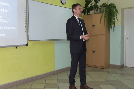 W dniu 14 marca 2019 r. w naszej szkole odbyła się VI Edycja Gminnego Konkursu Matematycznego dla uczniów klas VII z terenu gminy Potok Wielki pod hasłem „Myślę, liczę, stosuję”. Honorowy patronat nad konkursem objął Wójt Gminy Potok Wielki – pan Leszek Nosal. Organizatorami były nauczycielki matematyki – p. Ewa Kusz oraz p. Jolanta Gajór. Celem zorganizowania konkursu było upowszechnianie i uatrakcyjnianie wiedzy matematycznej wśród uczniów, rozwijanie samodzielnego, twórczego i logicznego myślenia matematycznego, doskonalenie umiejętności i kształtowanie pojęć matematycznych oraz integracja środowiska uczniowskiego.