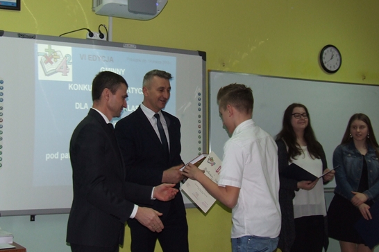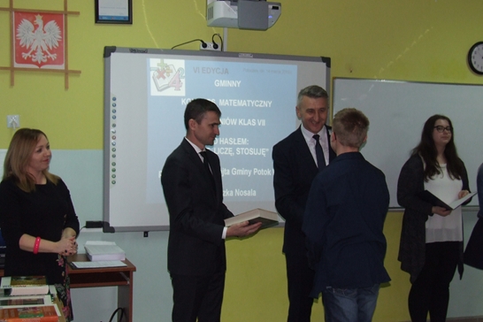 Ogłoszenie wyników konkursu nastąpiło w dniu jego przeprowadzenia. I miejsce zajął Bartosz Pietrzyk z PSP w Potoku Wielkim, II miejsce – Gabriela Kusy z PSP w Potoczku, III miejsce – Bartłomiej Czajka z PSP w Potoku Wielkim oraz Bartosz Szkutnik z PSP w Potoczku. Wszyscy uczestnicy za aktywny udział w konkursie otrzymali pamiątkowe dyplomy oraz atrakcyjne nagrody książkowe ufundowane przez Wójta Gminy Potok Wielki – pana Leszka Nosala. Nauczycielom matematyki wręczono podziękowania za przygotowanie uczniów do konkursu.