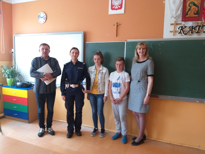 W dniu 26.04.2019 r. w Publicznej Szkole Podstawowej im. Ofiar Katynia w Potoku Wielkim odbyły się gminne eliminacje Ogólnopolskiego Turnieju Wiedzy Bezpieczeństwa o Ruchu Drogowym. Głównym celem turnieju jest podnoszenie kultury społeczeństwa i działanie na rzecz poprawy stanu bezpieczeństwa ruchu drogowego, w tym bezpieczeństwa dzieci i młodzieży szkolnej. Do współzawodnictwa przystąpiły drużyny ze szkół podstawowych z terenu gminy Potok Wielki. Uczestnicy rozwiązywali testy dotyczące przepisów ruchu drogowego oraz wykonywali zadania praktyczne z jazdy rowerem po torze sprawnościowym. Naszą szkołę reprezentowali uczniowie z klasy VI: Magdalena Sakłak, Natalia Tęcza, Karol Małek oraz Jakub Szabat. W ogólnej klasyfikacji po testach teoretycznych oraz zadaniach praktycznych nasi uczniowie zajęli II miejsce. Gratulujemy i życzymy powodzenia w przyszłym roku szkolnym. Uczniów do turnieju przygotowała p. M. U. Olszówka.
