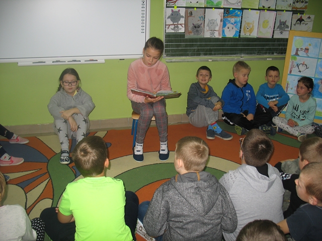W ramach konkursu w szkole zorganizowano Dzień głośnego czytania. Chętni uczniowie czytali głośno wybrane opowiadania przygód Gangu Słodziaków. Wcześniej odbył się konkurs plastyczny pt. „Mój ulubiony słodziak” – malowanie postaci techniką dowolną. Wyróżniono kilka prac za które uczniowie otrzymali upominki. Dzień głośnego czytania w naszej szkole był zorganizowany we współpracy wychowawców klas I – III.