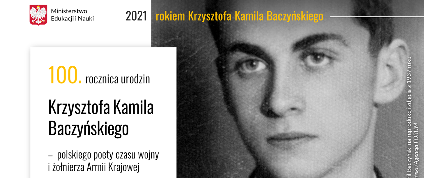 Sto lat temu, 22 stycznia 1921 roku, urodził się Krzysztof Kamil Baczyński – jeden z najwybitniejszych polskich twórców, poeta pokolenia Kolumbów, powstaniec warszawski. Sejm Rzeczypospolitej Polskiej ogłosił rok 2021 Rokiem Krzysztofa Kamila Baczyńskiego.