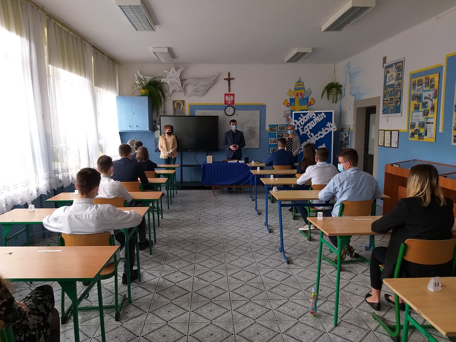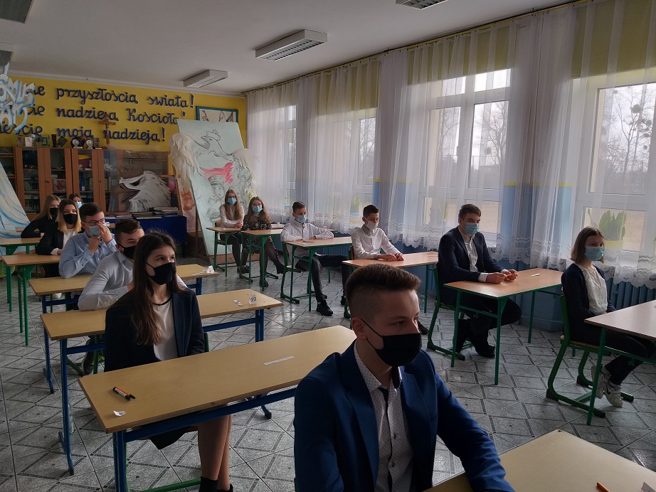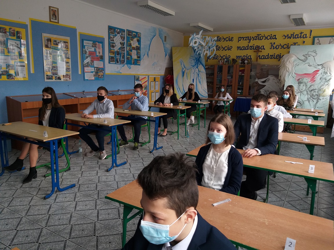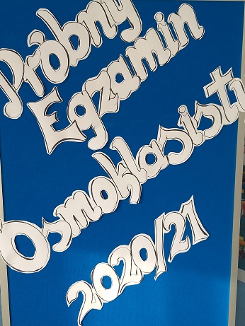 W dniach od 17 do 19 marca 2021r. uczniowie kl. VIII przystąpili do próbnego egzaminu ósmoklasisty organizowanego przez Centralną Komisję Egzaminacyjną. Egzamin próbny odbył się w szkole z zachowaniem wszelkich reguł dotyczących bezpieczeństwa sanitarnego. Uczniowie samodzielnie pracowali z arkuszem egzaminacyjnym, sprawdzającym wiedzę z przedmiotów: język polski, matematyka, język angielski. Egzamin został przeprowadzony w warunkach zbliżonych do obowiązujących podczas właściwego egzaminu (tj. godzina rozpoczęcia pracy z arkuszem egzaminacyjnym, samodzielne rozwiązywanie zadań przez uczniów, zaznaczanie odpowiedzi na karcie odpowiedzi). Nad prawidłowym przebiegiem egzaminu czuwały p. Anna Michalczyk i p. Joanna Kułaga. Wszyscy uczniowie z kl. VIII przystąpili do próbnego egzaminu ósmoklasisty.