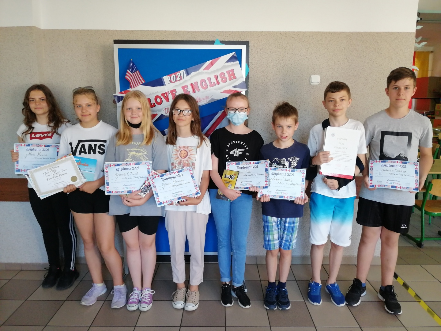 W tym roku szkolnym do konkursu przystąpiło 11 uczniów naszej szkoły z klasy V i VI. Niestety, ze względu na zawieszenie zajęć w szkole spowodowane zagrożeniem Covid- 19, uczniowie pisali konkurs w swoich domach, łącząc się z nauczycielem prowadzącym na platformie google meet . Uczestnicy konkursu pisali test 14 kwietnia 2021 r. Rozwiązywali trwający 45 minut test online, który sprawdzał wiedzę z zakresu gramatyki, słownictwa, kultury oraz rozumienia tekstów pisanych i tekstów ze słuchu.