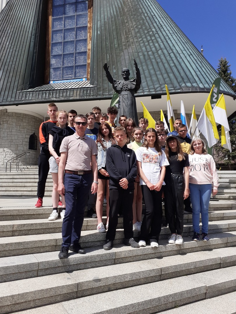 Jako społeczność szkoły noszącej imię Jana Pawła II oczywiście nie mogliśmy nie odwiedzić miejsc związanych z osobą naszego Patrona. Jednym z takim miejsc było Sanktuarium Matki Boskiej Fatimskiej na Krzeptówkach. Kościół ten został wybudowany jako votum wdzięczności za ocalenie życia Ojcu Świętemu w zamachu na Placu Świętego Piotra