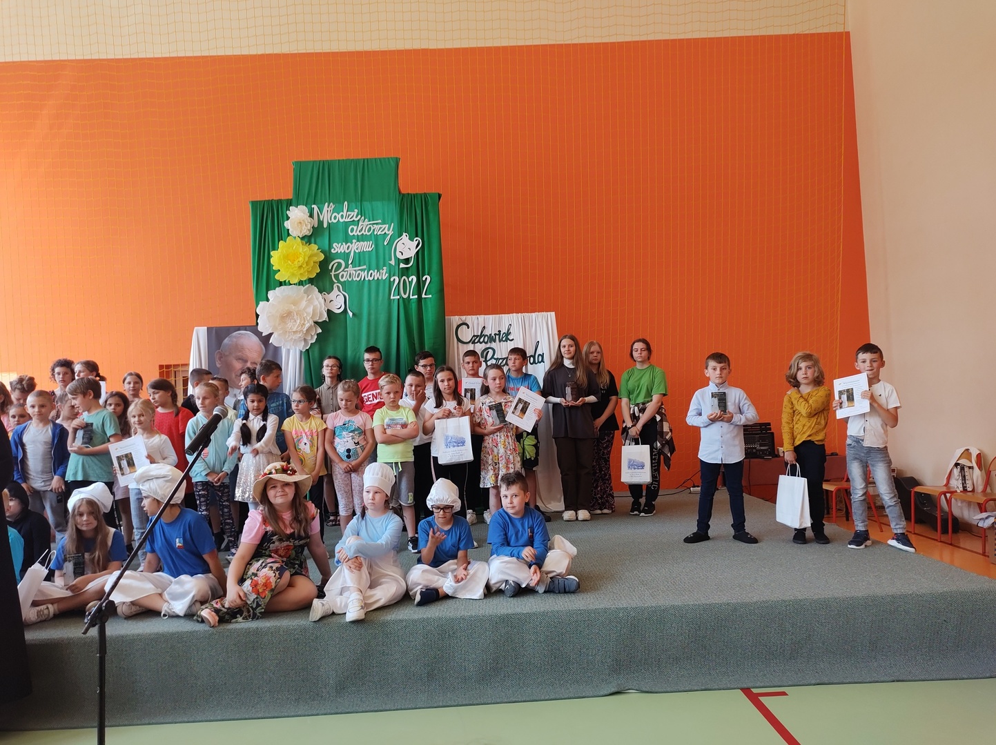 Publiczną Szkołę Podstawową im Jana Pawła II w Potoczku reprezentował zespół teatralny w składzie: Wiktoria Chmiel, Maja Kucia, Wiktoria Rudnicka, Julia Tracz, Oskar Janiszewski, Konrad Mirosław, Jakub Pikula, Artem Ratushnyi. Reżyserem i opiekunem grupy była pani Mariola Wójcik oraz pani Jolanta Gajór. Artyści przedstawili spektakl zainspirowany słowami Świętego Jana Pawła II o umiłowaniu i poszanowaniu historii i tradycji naszej ojczyzny: „Abyście nie podcinali sami tych korzeni, z których wyrastacie”. Po obejrzeniu, analizie i ocenie Jury postanowiło przyznać naszej grupie pierwsze miejsce. Zwycięzcy otrzymali dyplom, statuetkę GRAND PRIX oraz nagrody książkowe.