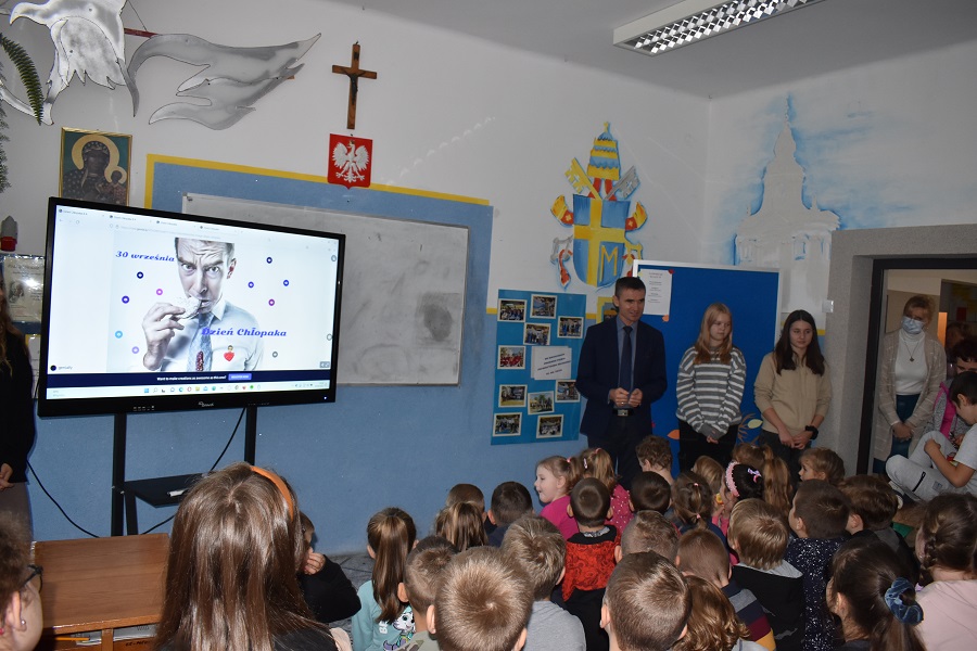 Z okazji Dnia Chłopaka dziewczęta z poszczególnych klas przygotowały dla chłopców drobne upominki i złożyły im życzenia. Natomiast dziewczęta reprezentujące Samorząd Uczniowski wraz z opiekunami przygotowały piosenki, przedstawiły prezentację multimedialną o chłopcach oraz przeprowadziły plebiscyt na najprzystojniejszego i najmilszego chłopaka, najlepszego piłkarza, wokalistę oraz tancerza. W głosowaniu brały udział wyłącznie dziewczęta z naszej szkoły. Każda z nich miała możliwość oddania głosu na swojego faworyta. Chłopcy, którzy uzyskali największą liczbę głosów otrzymali pamiątkowe medale.