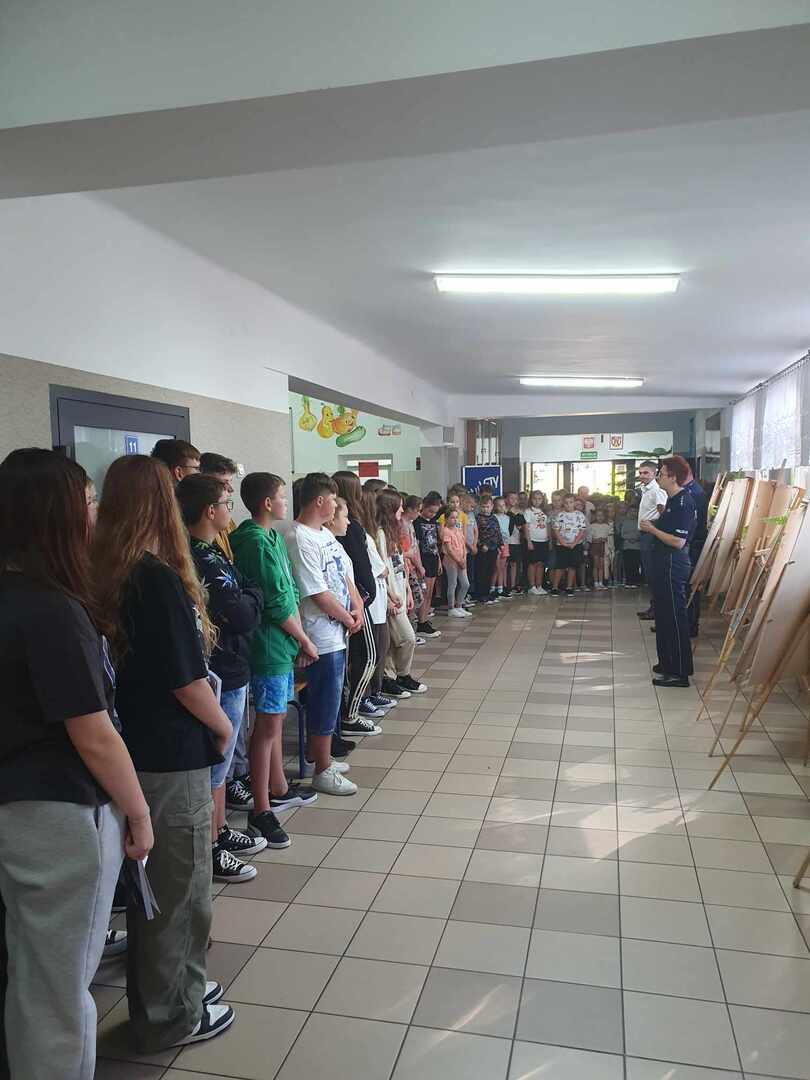 W ramach tej akcji policjanci uświadamiają dzieci jak dbać o własne bezpieczeństwo na drodze i jak ważną rolę spełniają odblaski. W naszej szkole takie spotkanie odbyło się 7 września 2023r. Odwiedzili nas policjanci z Komendy Powiatowej Policji w Janowie Lubelskim.