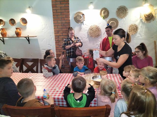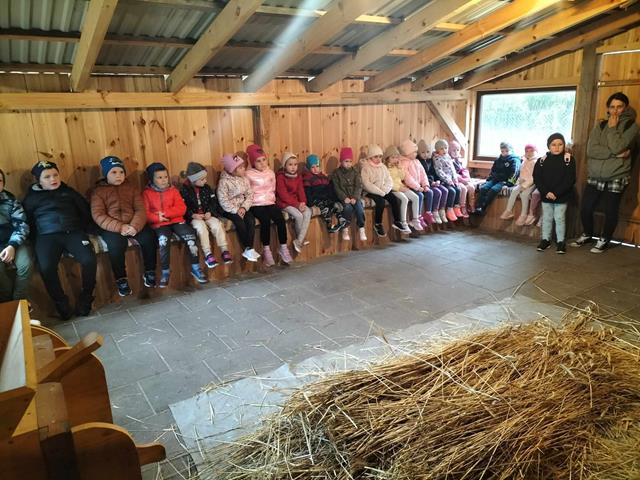 20 października 2023 r. dzieci z Oddziału Przedszkolnego I i II wzięły udział w wycieczce do Osady Leśnej Doboszówka , która znajduje się w miejscowości Kalenne. Przedszkolaki uczestniczyły w warsztatach „ Od ziarenka do bochenka”, podczas których mogły zobaczyć cały proces powstawania mąki, chleba oraz masła. Każde dziecko spróbowało młócenia cepem, czyszczenia ziarna, mielenia zboża na ręcznych żarnach. Przedszkolaki z pomocą rodziców zagniatały ciasto na chleb ,a następnie oddali do upieczenia. Dodatkową atrakcją było karmienie zwierząt oraz zabawy z animatorem. Dzieci wróciły do przedszkola trzymając cieplutki upieczony bochenek chlebka. To był dzień pełen wrażeń dla każdego przedszkolaka.