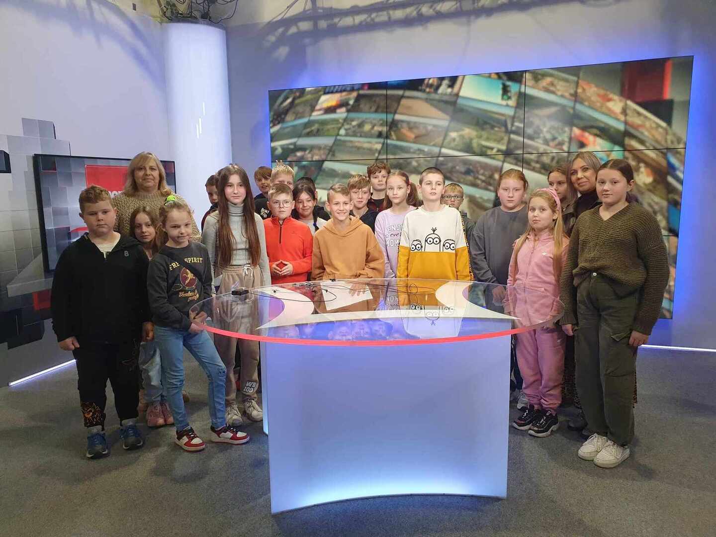 Dnia 27 października 2023 r. odbyła się wycieczka klasy IV i V do Lublina pod opieką: p. Marioli Wójcik i p. Wiesławy Grzybowskiej. Pierwszym punktem programu było zwiedzanie miasta (Stare Miasto, Brama Grodzka, Archikatedra Lubelska, Plac Litewski, Zamek Lubelski). Następnie udaliśmy się z wizytą do siedziby TVP 3 Lublin. Dzieci miały możliwość zwiedzania z przewodnikiem poszczególnych studiów nagrań programów, między innymi „Jeden z dziesięciu”, „Panorama Lubelska” czy „Poranek między Wisłą I Bugiem”. Mieliśmy okazję dowiedzieć się, jak wygląda praca w telewizji oraz obejrzeć „od kuchni” studia nagrań i pomieszczenia reżyserskie. Niektóre z pomieszczeń zrobiły na dzieciach ogromne wrażenie: kamery, mnóstwo świateł, odpowiednia scenografia i praca wielu ludzi sprawiają, że oglądane przez nas programy w telewizji w rzeczywistości wyglądają inaczej. Wycieczkę zakończyliśmy wizytą w kinie i obejrzeliśmy film „Sposób na ducha”.