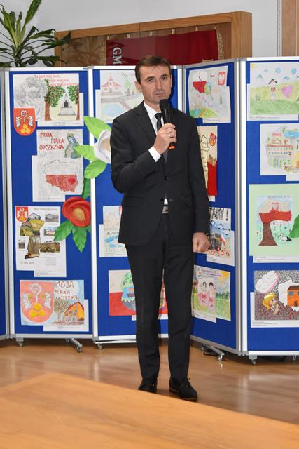 Następnie Dyrektor Publicznej Szkoły Podstawowej im. Jana Pawła II w Potoczku Pan Jan Brzozowski dokonał podsumowania konkursu oraz podziękował dyrektorom szkół biorących udział w konkursie, nauczycielom i obecnym rodzicom za zaangażowanie, a uczniom za wykonanie pięknych prac. Konkurs cieszył się bardzo dużym zainteresowaniem. Wpłynęło ponad 90 prac dzieci z oddziałów przedszkolnych i uczniów szkół z terenu Gminy Potok Wielki. Wszystkie prace wykonane były na wysokim poziomie, a uczniowie wykazali się dużą kreatywnością, przez co komisja miała bardzo trudne zadanie. Ostatecznie jury, biorąc pod uwagę zgodność z regulaminem, tematem konkursu oraz estetykę pracy, wyłoniło laureatów konkursu w czterech kategoriach: przedszkole, klasy I – III, klasy IV – VI i klasy VII – VIII oraz przyznało wyróżnienia dla autorów prac o szczególnych walorach artystycznych.