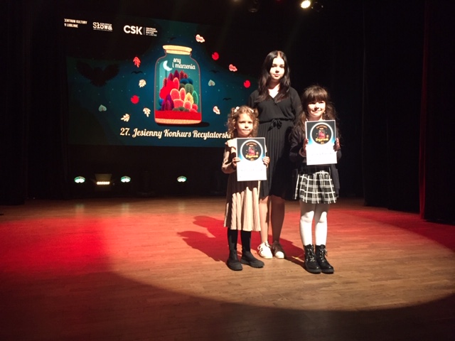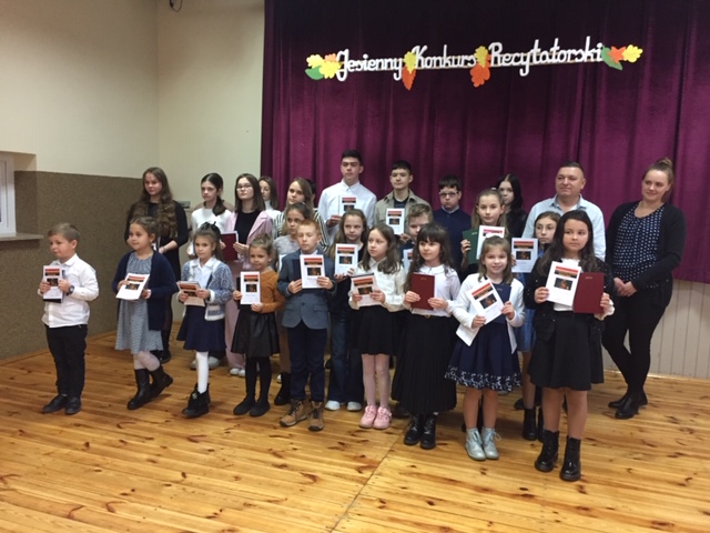 Tegoroczna edycja Jesiennego Konkursu Recytatorskiego przebiegała pod hasłem „Sny i marzenia”. 14 listopada odbył się etap gminny, w którym brali udział uczniowie: Marcelina Rudnicka kl. I, Amelia Jargieło kl. II, Hanna Skupińska kl. II, Liliana Rudnicka kl. III, Nikola Mazur kl. IV, Maja Nosal kl. IV, Jakub Brzozowski kl. V, Ignacy Lewandowski kl. VI, Wiktoria Chmiel kl. VIII. 16 listopada w Janowskim Ośrodku Kultury przeprowadzony został etap powiatowy. Naszą szkołę reprezentowali: Marcelina Rudnicka, Liliana Rudnicka, która uzyskała wyróżnienie, Wiktoria Chmiel, która zdobyła III miejsce. Wszystkim uczestnikom gratulujemy pięknych występów i życzymy dalszych osiągnięć.