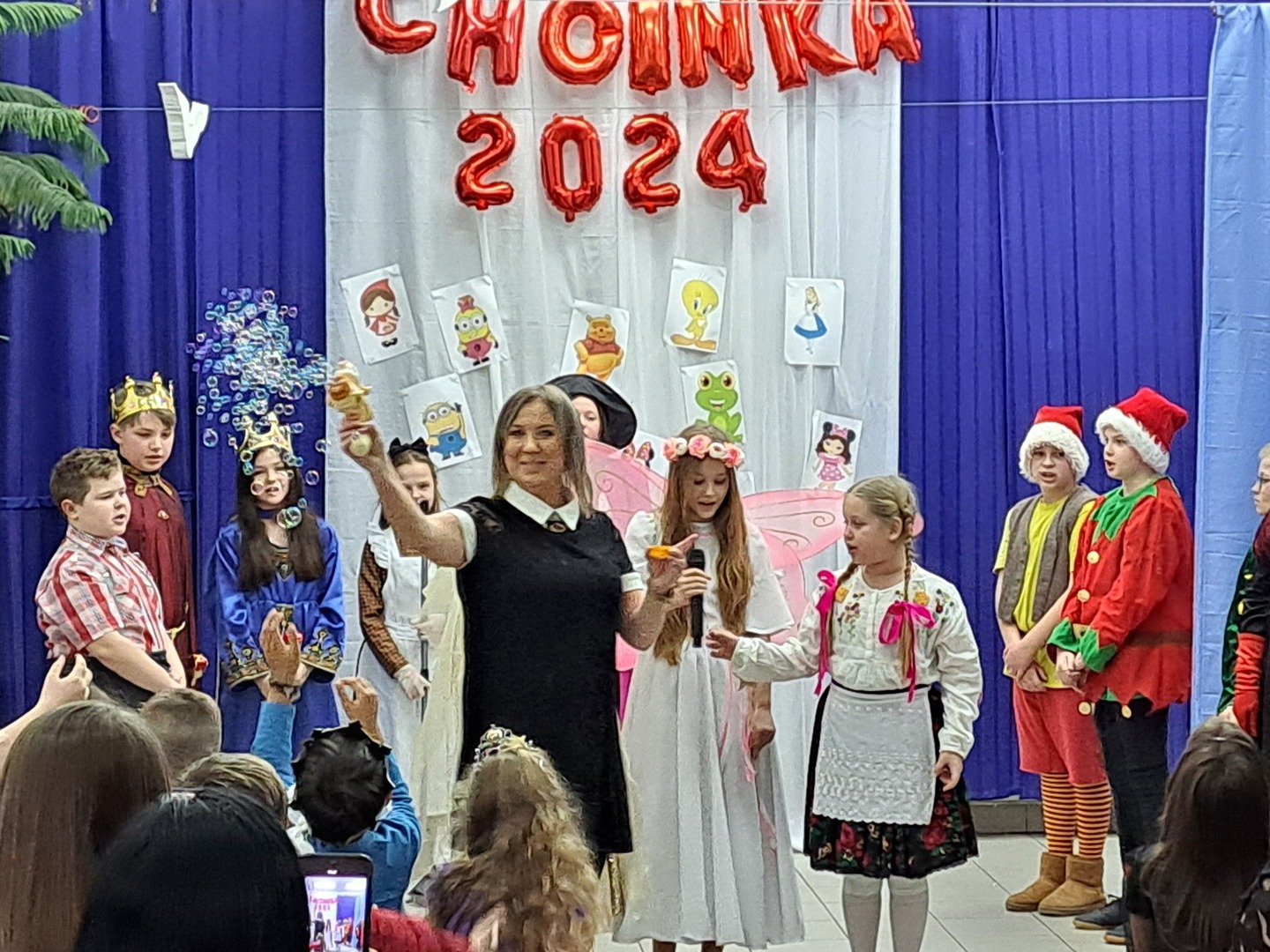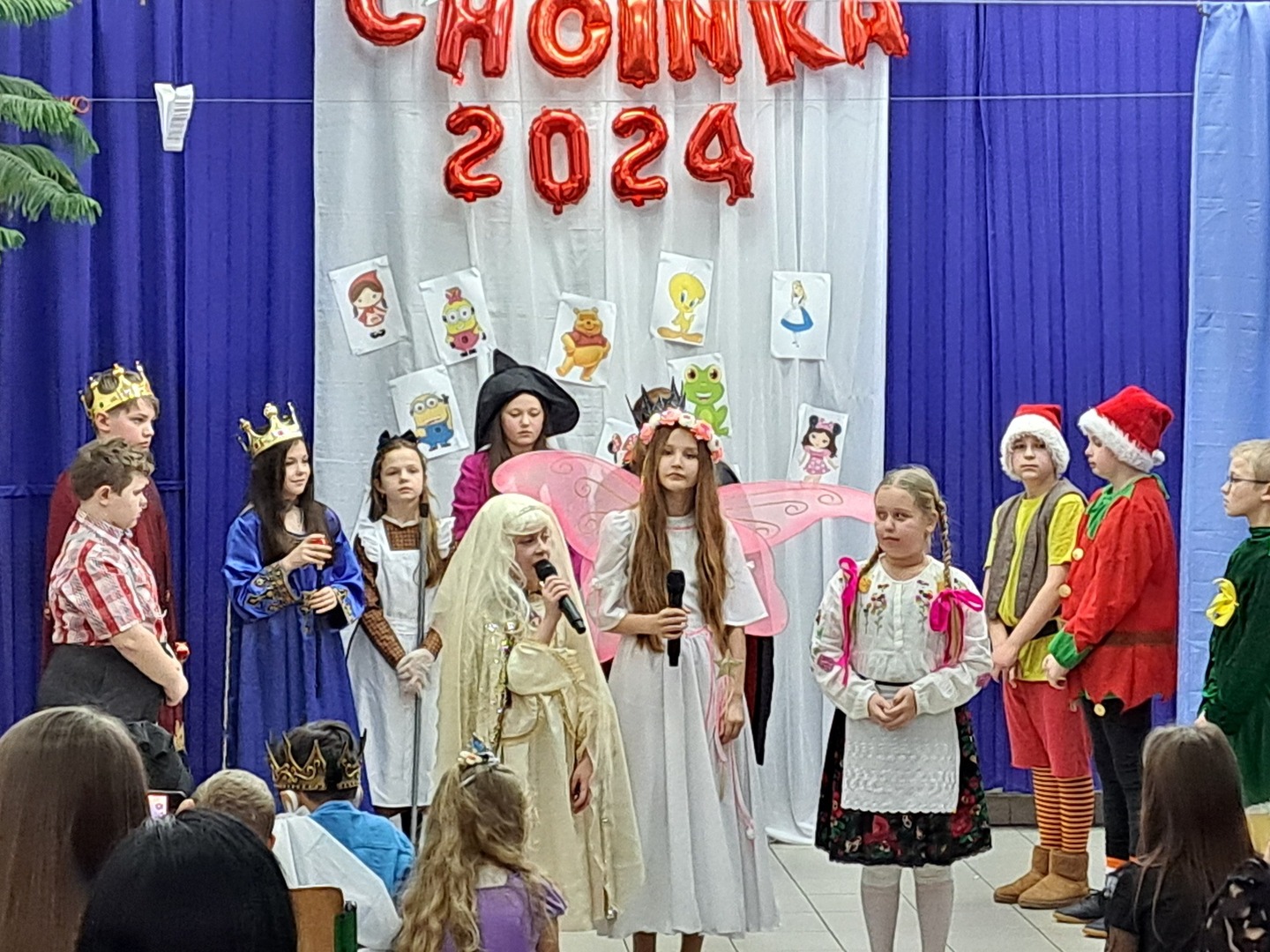 W drugiej części zabawy choinkowej klasa IV pod opieką wychowawcy – pani Marioli Wójcik zaprezentowała przedstawienie pt. „Baśniowy ambaras”. Poza tym odbyło się podsumowanie konkursu zorganizowanego przez Radę Rodziców Publicznej Szkoły Podstawowej im. Jana Pawła II w Potoczku „Zostań Królem/Królową balu”.
