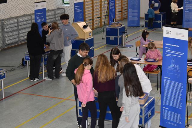 Uczniowie zwiedzali wystawę w grupach pod opieką nauczycieli. Liczebność grup i opiekę dostosowano do Naukobusowego regulaminu.