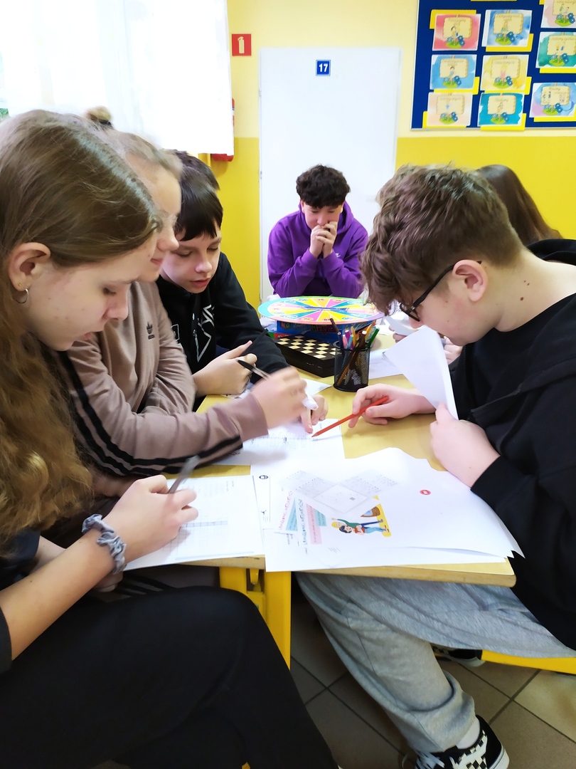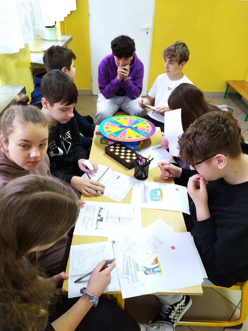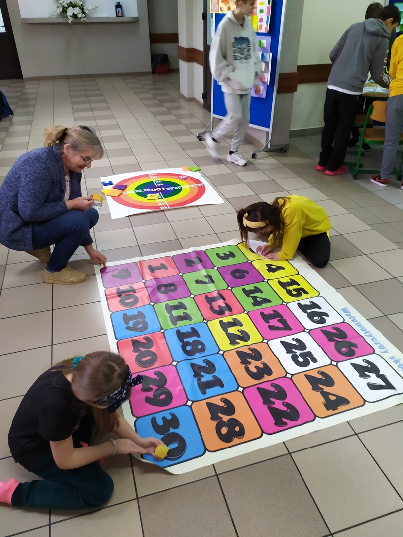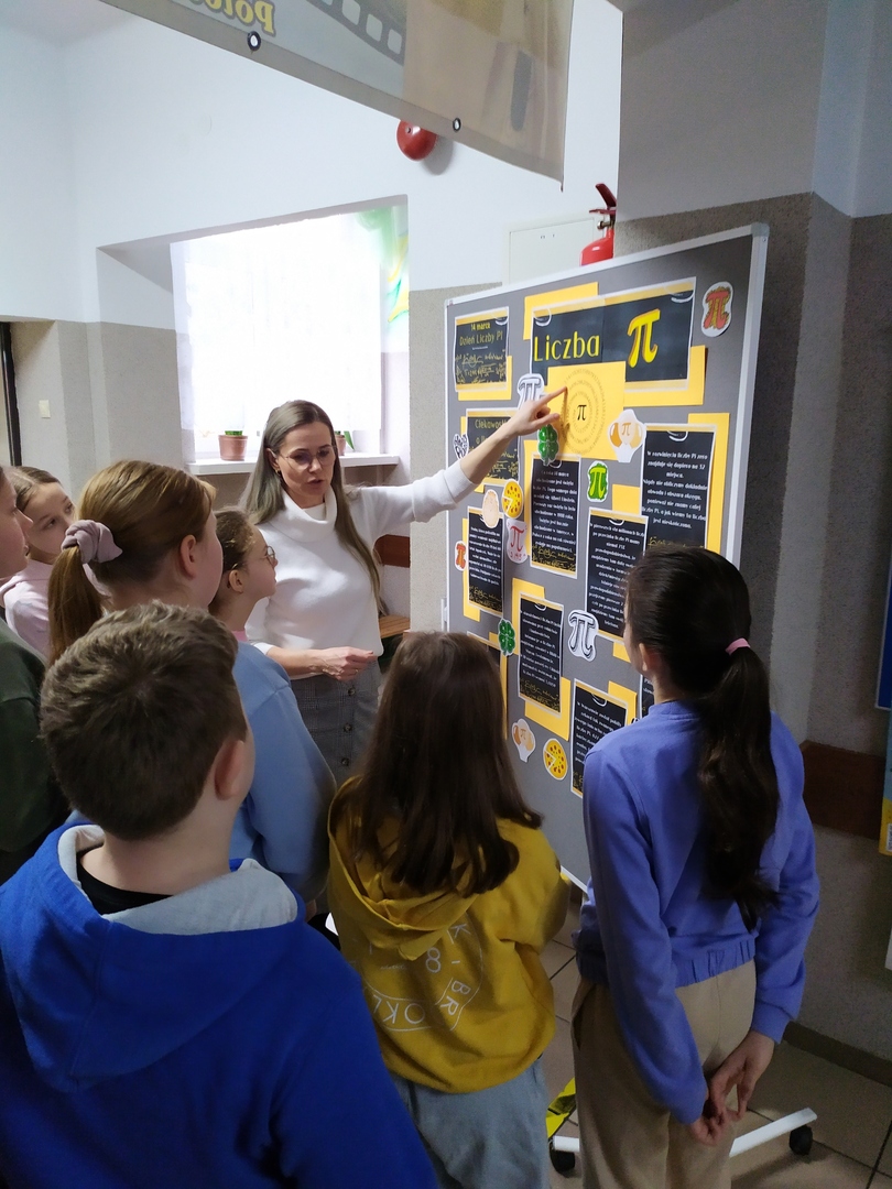 13 marca 2024r. obchodziliśmy w naszej szkole Święto Matematyki i Międzynarodowy Dzień Liczby Pi. Pokazaliśmy, że matematyka, to nie tylko liczby, wzory i trudne zadania, ale również znakomita przygoda i mnóstwo zabawy. Z tej okazji uczniowie brali udział w grach i zabawach matematycznych. Mieli do dyspozycji klocki, tangramy, układanki, bryły, łamigłówki matematyczne i różnorodne gry kształtujące logiczne myślenie, sprawność rachunkową. Uczniowie utrwalali poznaną wiedzę przez zabawę. Wielu z nich chętnie podjęło się rozwiązywania ciekawych zadań. Korytarze naszej szkoły były przyozdobione inspirującymi lapbookami wykonanymi przez dzieci i młodzież w ramach zrealizowanego projektu „Matematyka jest wszędzie”. Reprezentanci klas zmierzyli się w konkursie polegającym na zapamiętaniu kolejnych cyfr rozwinięcia dziesiętnego liczby Pi, rekordzistka - Dominika Szabat uczennica klasy VII zapamiętała 58 kolejnych cyfr.