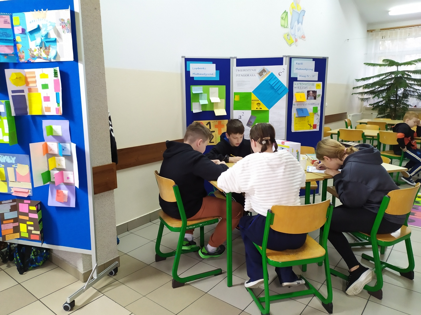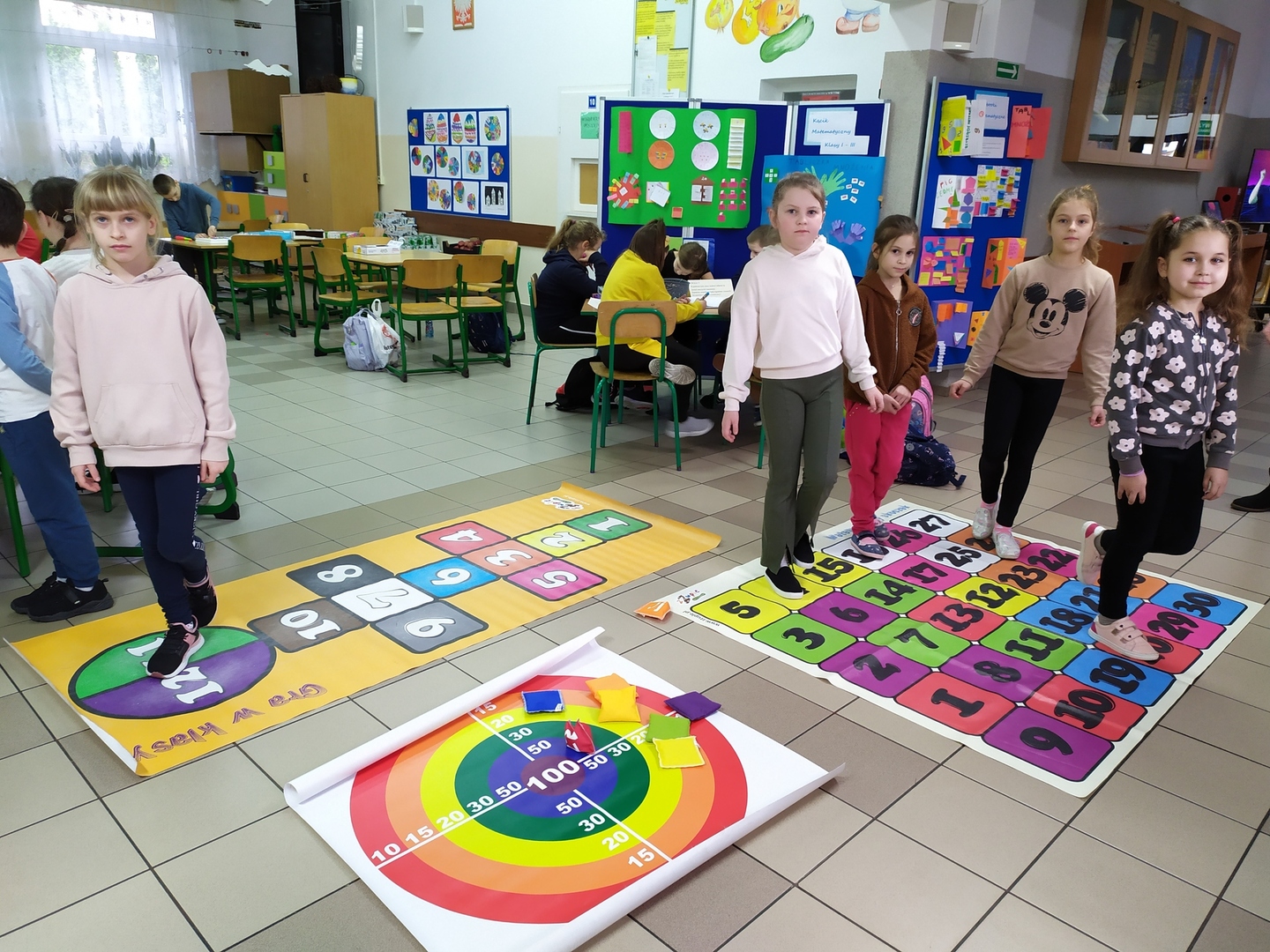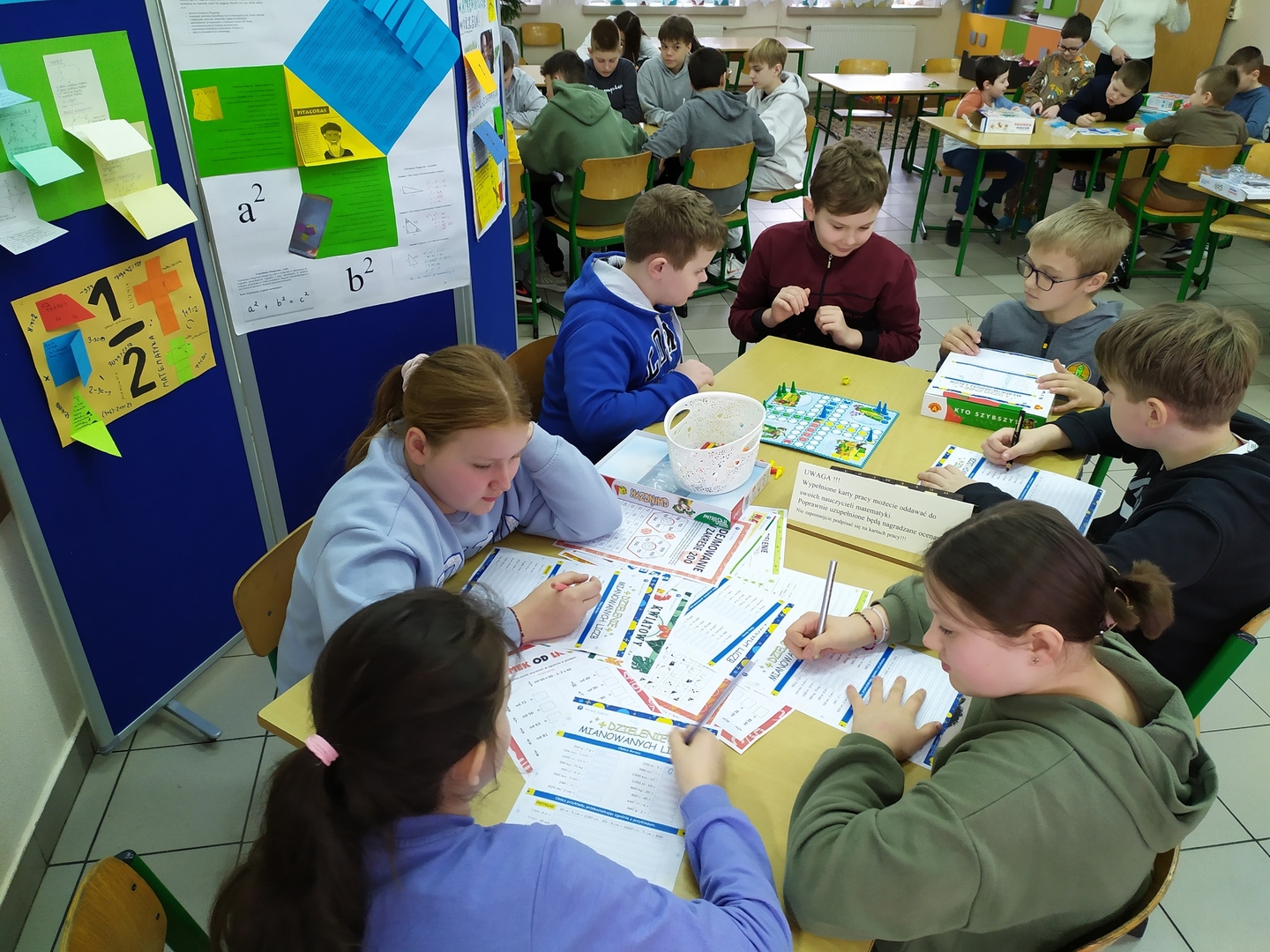 13 marca 2024r. obchodziliśmy w naszej szkole Święto Matematyki i Międzynarodowy Dzień Liczby Pi. Pokazaliśmy, że matematyka, to nie tylko liczby, wzory i trudne zadania, ale również znakomita przygoda i mnóstwo zabawy. Z tej okazji uczniowie brali udział w grach i zabawach matematycznych. Mieli do dyspozycji klocki, tangramy, układanki, bryły, łamigłówki matematyczne i różnorodne gry kształtujące logiczne myślenie, sprawność rachunkową. Uczniowie utrwalali poznaną wiedzę przez zabawę. Wielu z nich chętnie podjęło się rozwiązywania ciekawych zadań. Korytarze naszej szkoły były przyozdobione inspirującymi lapbookami wykonanymi przez dzieci i młodzież w ramach zrealizowanego projektu „Matematyka jest wszędzie”. Reprezentanci klas zmierzyli się w konkursie polegającym na zapamiętaniu kolejnych cyfr rozwinięcia dziesiętnego liczby Pi, rekordzistka - Dominika Szabat uczennica klasy VII zapamiętała 58 kolejnych cyfr.
