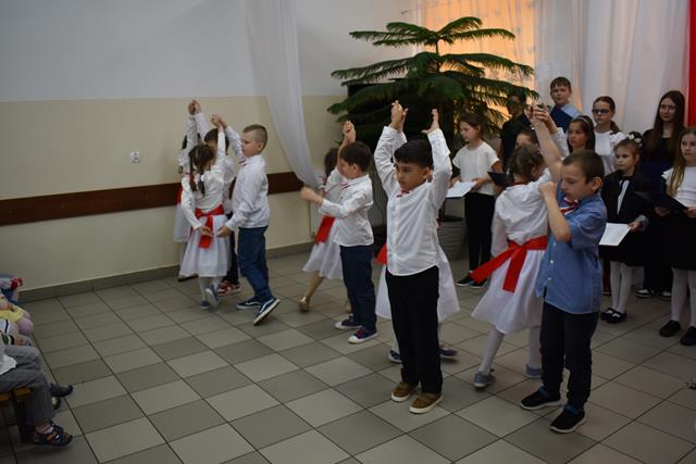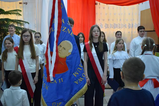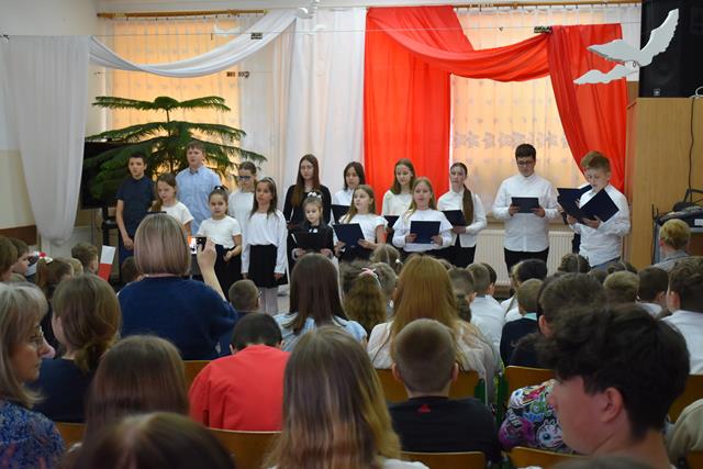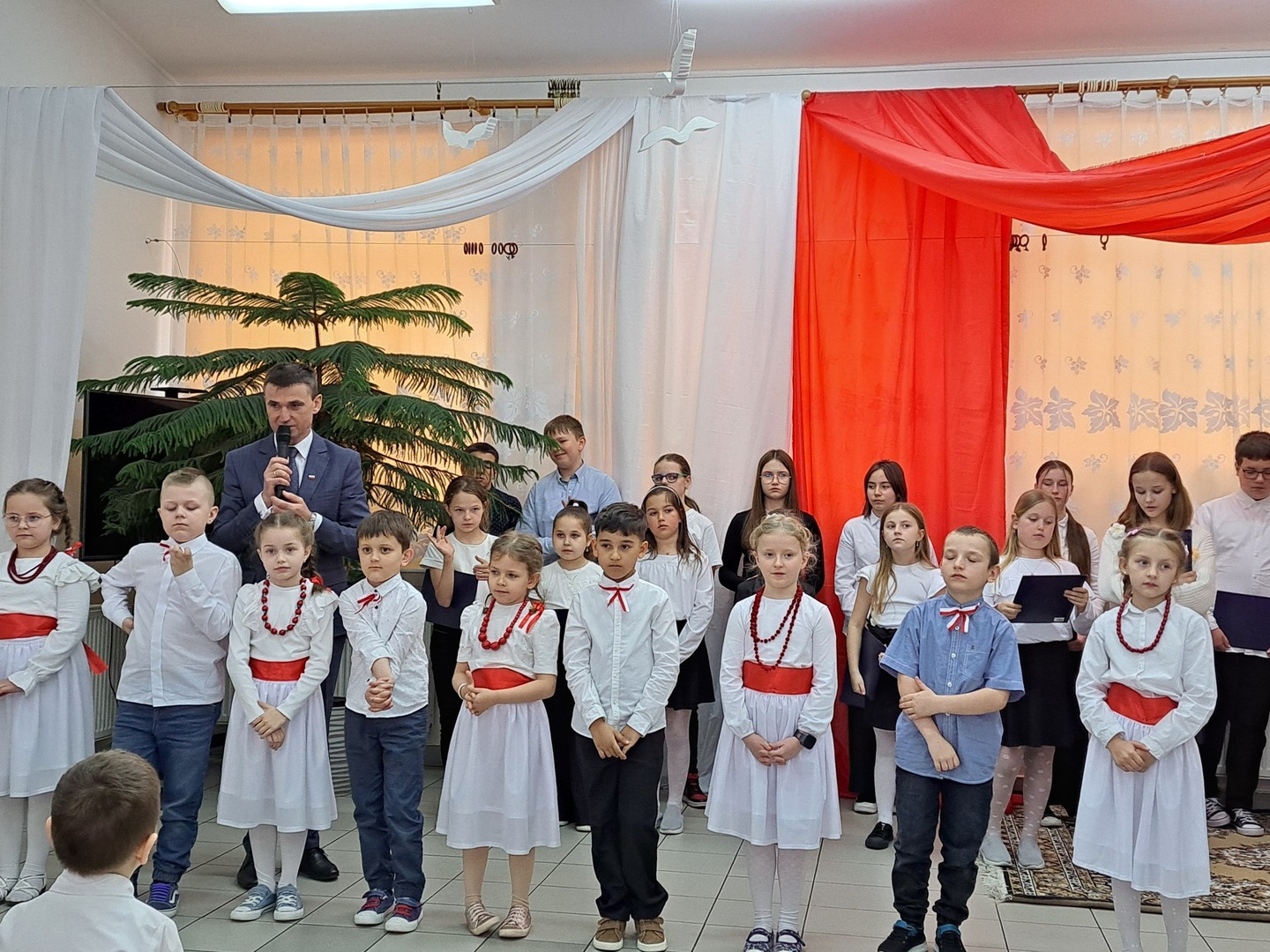 We wtorek, 30 kwietnia 2024 r., w naszej szkole odbył się uroczysty apel z okazji 233. rocznicy uchwalenia Konstytucji 3 Maja, który rozpoczął się odśpiewaniem hymnu narodowego przez całą społeczność szkolną. Krótki montaż słowno – muzyczny upamiętniający to wydarzenie przygotowali uczniowie klasy VI oraz chór szkolny. Swój talent taneczny zaprezentowali następnie pierwszoklasiści, wykonując z zaangażowaniem kujawiaka, zaliczanego do polskich tańców narodowych. Małych tancerzy do występu przygotowała p. M. U. Olszówka oraz wychowawczyni, p. M. Kubicka.