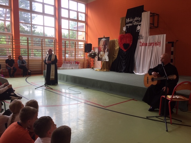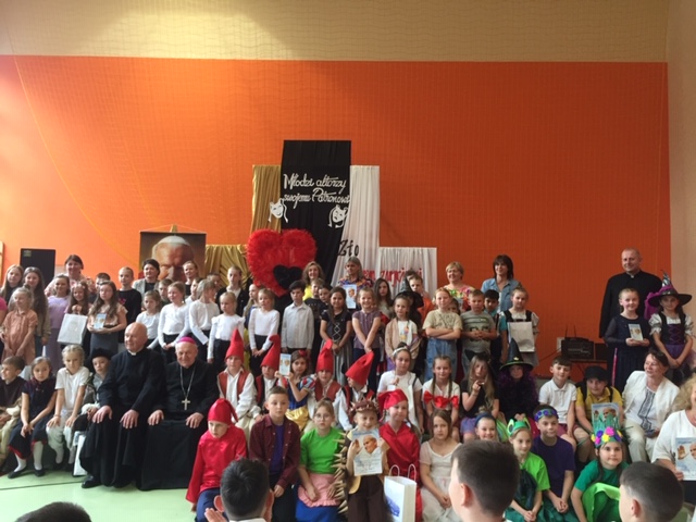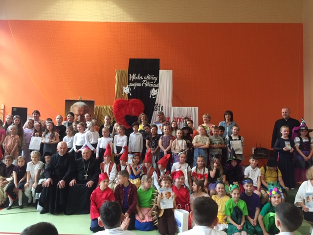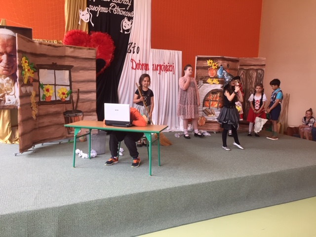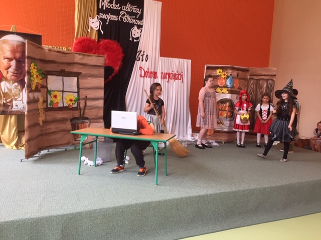 Dnia 23 maja 2024r. w Publicznej Szkole Podstawowej im. Jana Pawła II w Woli Rzeczyckiej odbyły się XVII Diecezjalne Spotkania Teatralne SZKÓŁ NOSZĄCYCH IMIĘ JANA PAWŁA II „Młodzi aktorzy swojemu Patronowi”. Tegoroczna edycja była skierowana do uczniów klas I- III, a tematyka przebiegała pod hasłem: „Nie daj się zwyciężyć złu, ale zło dobrem zwyciężaj”. Celem konkursu było pobudzenie inwencji twórczej i wrażliwości estetycznej uczestników, kształtowanie u dzieci właściwych postaw etycznych, ukazanie roli dobra w życiu codziennym, integracja szkół noszących imię Jana Pawła II z terenu Diecezji Sandomierskiej, prezentacja i promocja twórczości artystycznej dzieci. W konkursie wzięło udział 7 zespołów teatralnych. Naszą szkołę reprezentowali uczniowie: Marcelina Rudnicka, Aryan Samir, Amelia Jargieło, Hanna Skupińska, Milena Gawron, Patrycja Mazurek, Liliana Rudnicka, Patrycja Rudnicka, Mikołaj Wróbel. „Mali aktorzy” pod kierunkiem pani Jolanty Wolanin przedstawili inscenizację „Komputer i bajki”, za którą otrzymali III miejsce. Scenografię przygotowała pani Iwona Sulowska. Opiekę na wyjeździe sprawowała pani Maria Kubicka i pani Ewelina Skupińska. Gratulujemy uczniom udanego występu i życzymy dalszych osiągnięć teatralnych.