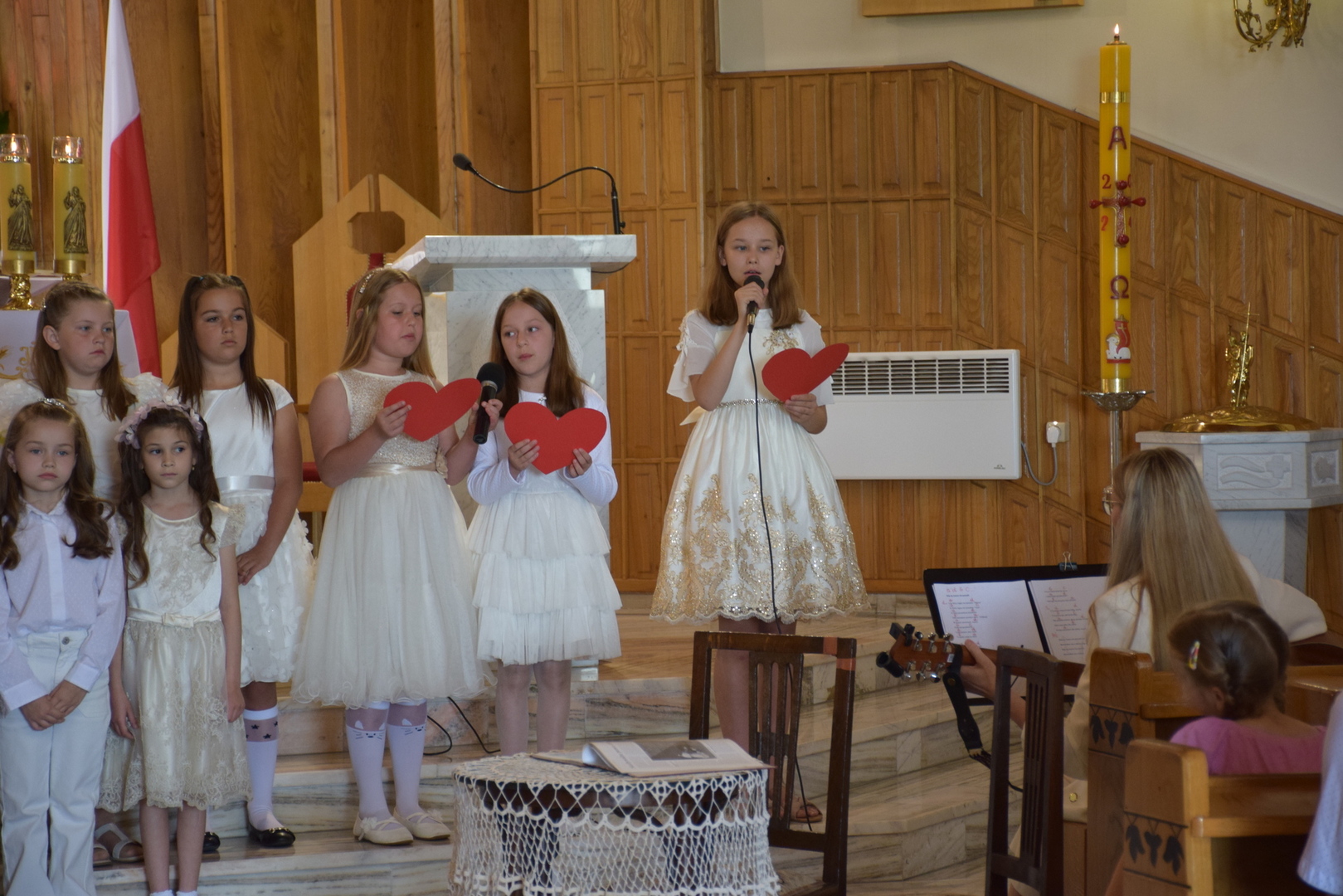 Młodsze dzieci z dużym zaangażowaniem recytowały wiersze z okazji Dnia Mamy. Wzruszające teksty, życzenia i piosenki dedykowane Mamom wyrażały miłość, wdzięczność i szacunek. Dzieci włożyły w swoje występy całe serce, co wzruszyło obecne na uroczystości Mamy, które nie kryły łez radości i dumy.
