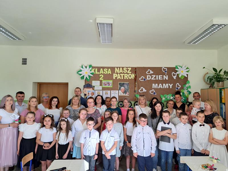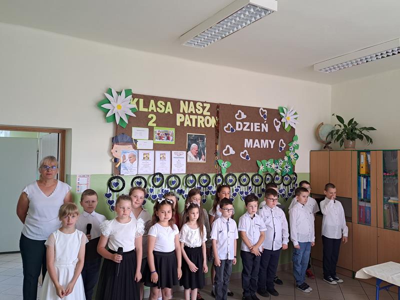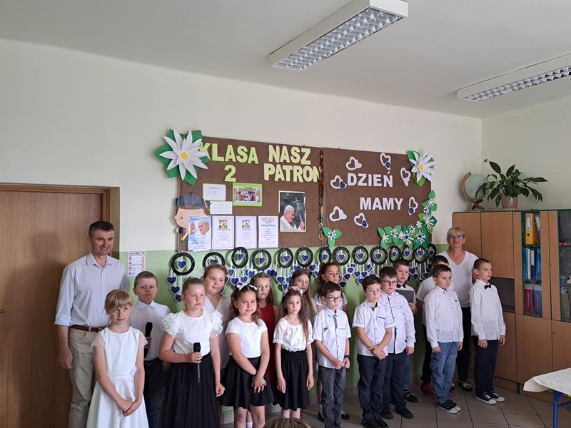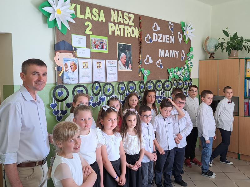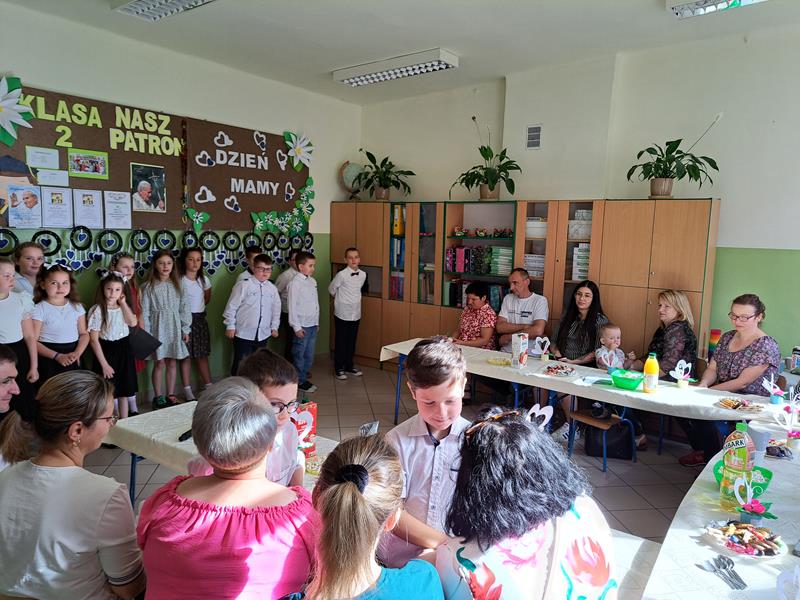 Jest taki jeden, szczególny dzień w roku 26 maja Dzień Matki. To święto było okazją, aby gościć mamy w klasie pierwszej i drugiej. Chwile spędzone razem z mamą z pewnością na długo pozostaną w pamięci dzieci. Recytując wiersze, śpiewając piosenki i tańcząc, dzieci pokazały jak bardzo kochają swoje mamy. Zaproszeni goście nie ukrywali wzruszenia, podziwiając swoje pociechy. Słowo do mam skierował również dyrektor szkoły pan Jan Brzozowski. Dziękując za trud wychowania złożył mamom najserdeczniejsze życzenia. Po występie dzieci wręczyły mamusiom własnoręcznie zrobione upominki. Do występu dzieci przygotowały wychowawczynie klasy I i II pani M. Kubicka i pani T. Janik oraz M. Olszówka nauczycielka muzyki. Spotkanie zakończył słodki poczęstunek.