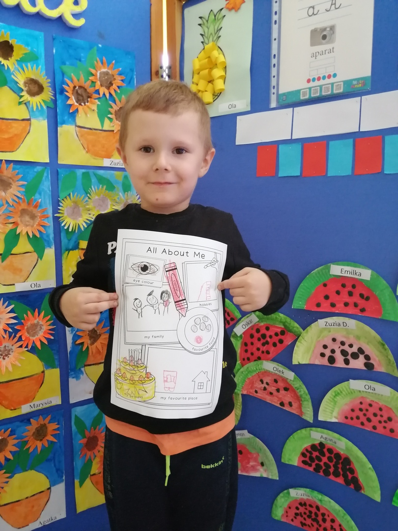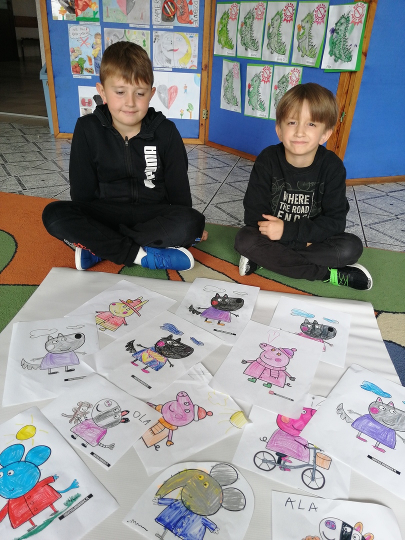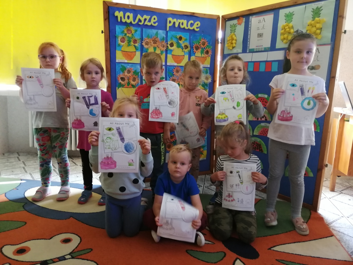 W tym roku szkolnym dzieci z oddziału przedszkolnego realizowały innowację programowo-metodyczną pt. „Angielski jest fun-tastyczny”. Głównymi jej celami było pokazanie dzieciom jak ważna w naszych czasach jest znajomość języka angielskiego, rozwijanie zainteresowania krajami anglojęzycznymi, uatrakcyjnienie sposobu nauczania i uczenia się języka oraz zapoznanie dzieci i nauczycieli z ideą dwujęzycznego nauczania. Innowacja była realizowana od 15 września 2023 r. do 15 czerwca 2024 r. Podczas zajęć dzieci oglądały prezentację multimedialną o znanej osobie zamieszkującej jeden z krajów anglojęzycznych. Stworzyły „Książkę o sobie”. Uczyły się prostej rymowanki w języku angielskim „Family Finger”. Uczyły się piosenki „One Little Finger”. Zaśpiewały piosenkę na apelu z okazji Dnia Mamy „ I love my mummy”. Obchodziły jedno ze świąt związanych z kulturą krajów anglojęzycznych - „Dzień Świętego Patryka”. Przygotowały gazetkę tematyczną o Wielkiej Brytanii. Słuchały książeczek z kodami QR. Wykonały karty obrazkowe dotyczące zwierząt domowych. Obejrzały bajkę anglojęzyczną „Peppa pig” i przygotowały ilustracje do jej treści. Wprowadzając taką innowację wierzymy, że nauka języka angielskiego stanie się dla dzieci wspaniałą przygodą i zachęci do dalszego poszerzania swoich umiejętności, a także przyniesie pozytywne wyniki podczas dalszej nauki języka angielskiego na etapie szkolnym.