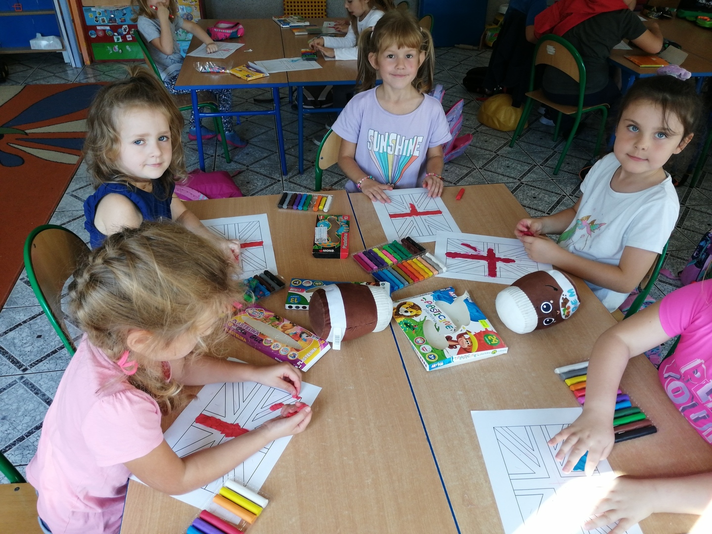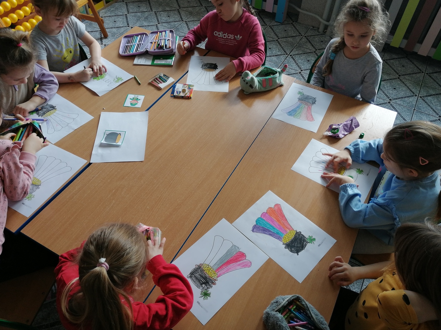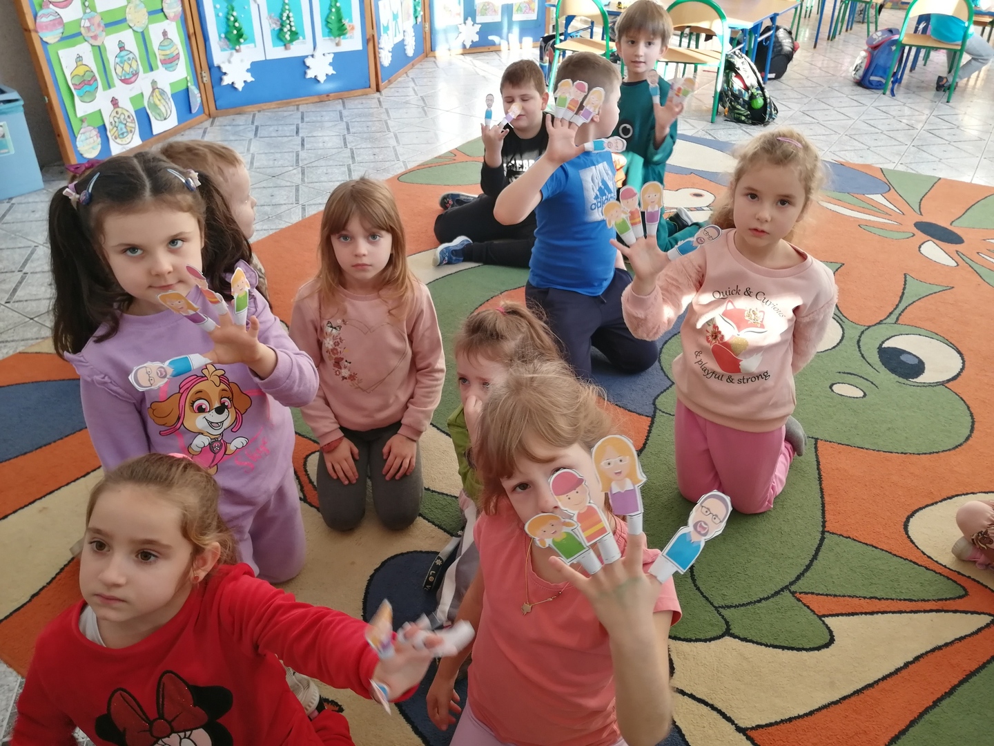 W tym roku szkolnym dzieci z oddziału przedszkolnego realizowały innowację programowo-metodyczną pt. „Angielski jest fun-tastyczny”. Głównymi jej celami było pokazanie dzieciom jak ważna w naszych czasach jest znajomość języka angielskiego, rozwijanie zainteresowania krajami anglojęzycznymi, uatrakcyjnienie sposobu nauczania i uczenia się języka oraz zapoznanie dzieci i nauczycieli z ideą dwujęzycznego nauczania. Innowacja była realizowana od 15 września 2023 r. do 15 czerwca 2024 r. Podczas zajęć dzieci oglądały prezentację multimedialną o znanej osobie zamieszkującej jeden z krajów anglojęzycznych. Stworzyły „Książkę o sobie”. Uczyły się prostej rymowanki w języku angielskim „Family Finger”. Uczyły się piosenki „One Little Finger”. Zaśpiewały piosenkę na apelu z okazji Dnia Mamy „ I love my mummy”. Obchodziły jedno ze świąt związanych z kulturą krajów anglojęzycznych - „Dzień Świętego Patryka”. Przygotowały gazetkę tematyczną o Wielkiej Brytanii. Słuchały książeczek z kodami QR. Wykonały karty obrazkowe dotyczące zwierząt domowych. Obejrzały bajkę anglojęzyczną „Peppa pig” i przygotowały ilustracje do jej treści. Wprowadzając taką innowację wierzymy, że nauka języka angielskiego stanie się dla dzieci wspaniałą przygodą i zachęci do dalszego poszerzania swoich umiejętności, a także przyniesie pozytywne wyniki podczas dalszej nauki języka angielskiego na etapie szkolnym.