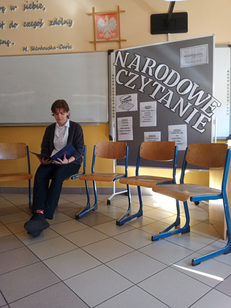 Tradycją naszej szkoły jest aktywne uczestnictwo w Narodowym Czytaniu pod patronatem Pary Prezydenckiej. Narodowe Czytanie to niezwykła inicjatywa, która od 2012 roku przybliża Polakom najważniejsze dzieła literatury narodowej. Trzynasta edycja tego wydarzenia, której lekturą był Kordian Juliusza Słowackiego, nabiera szczególnego znaczenia. Dramat ten, będący jednym z najważniejszych dzieł polskiego romantyzmu, ukazuje wewnętrzne rozterki młodego bohatera poszukującego sensu życia i próbującego znaleźć swoje miejsce w walce o wolność ojczyzny.