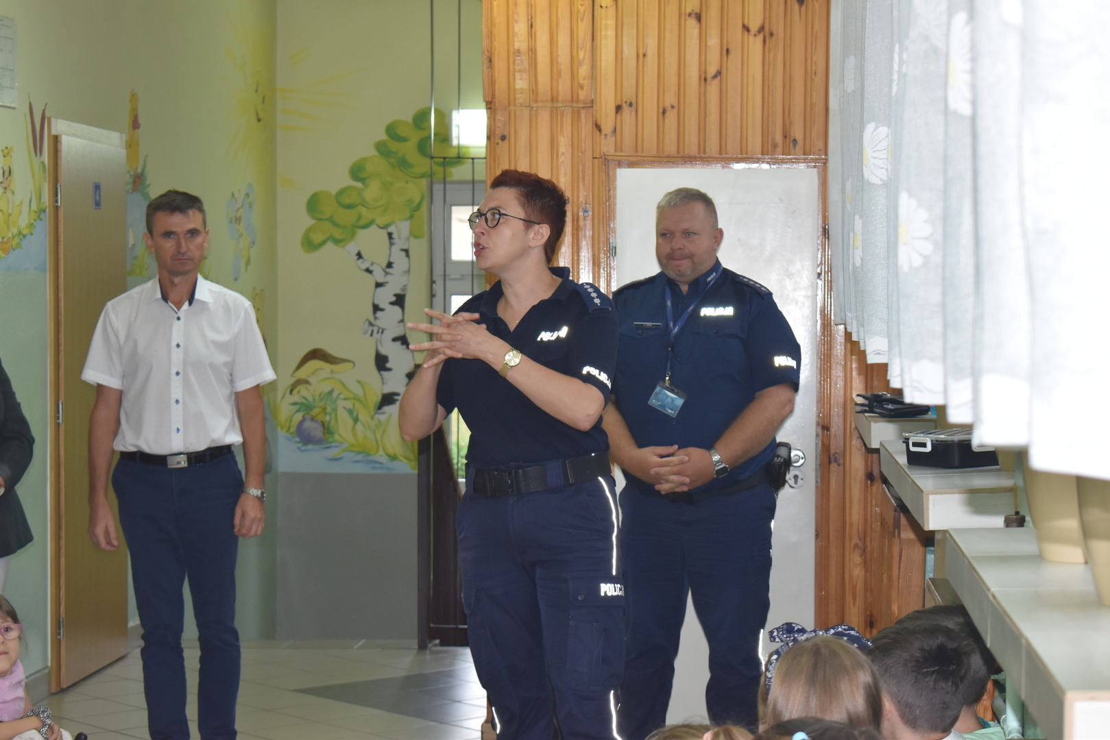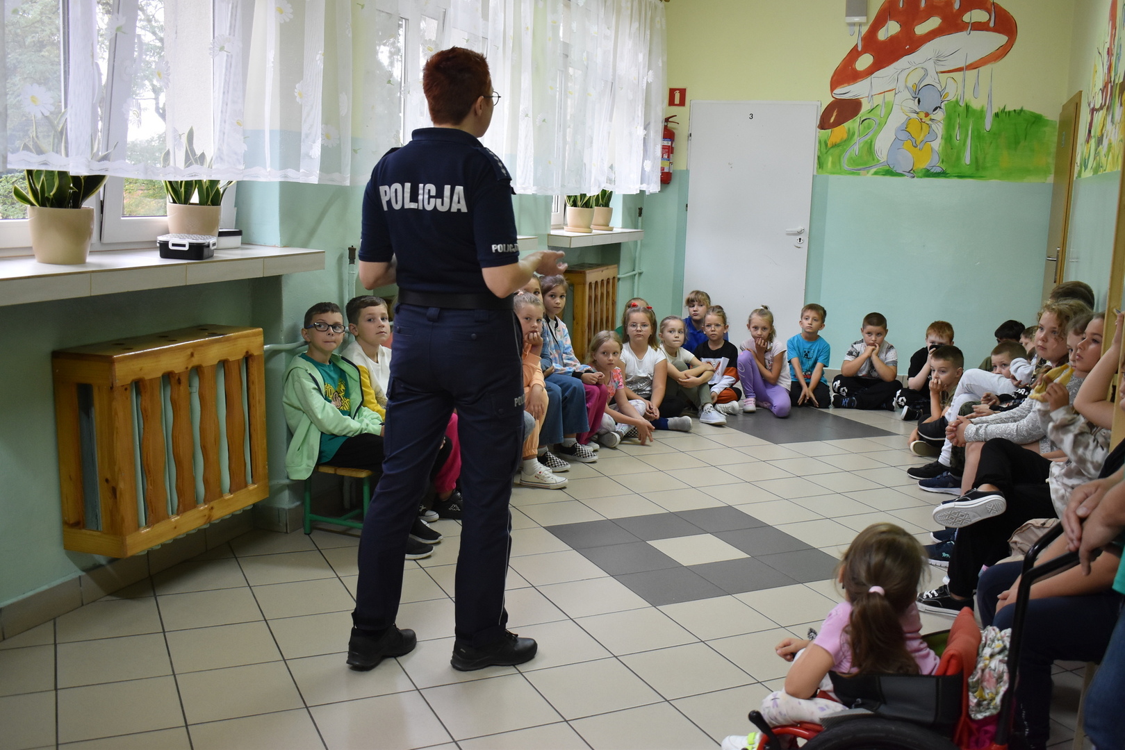 - Policjanci omówili, jak ważne jest zachowanie ostrożności na drogach, zwłaszcza w pobliżu szkoły, gdzie często dochodzi do wzmożonego ruchu pojazdów.