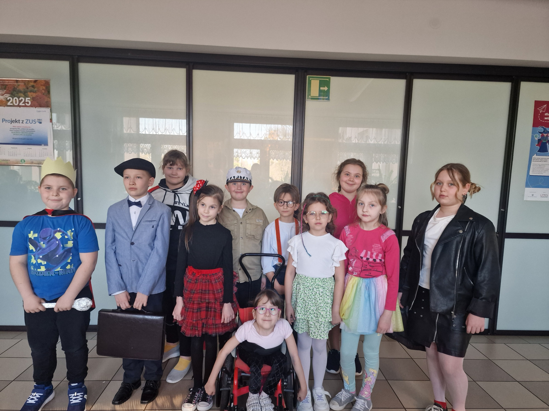 Tego dnia w szkole panowała niezwykła atmosfera, ponieważ wielu uczniów przebrało się za postacie z lektur, bajek lub swoich idoli.