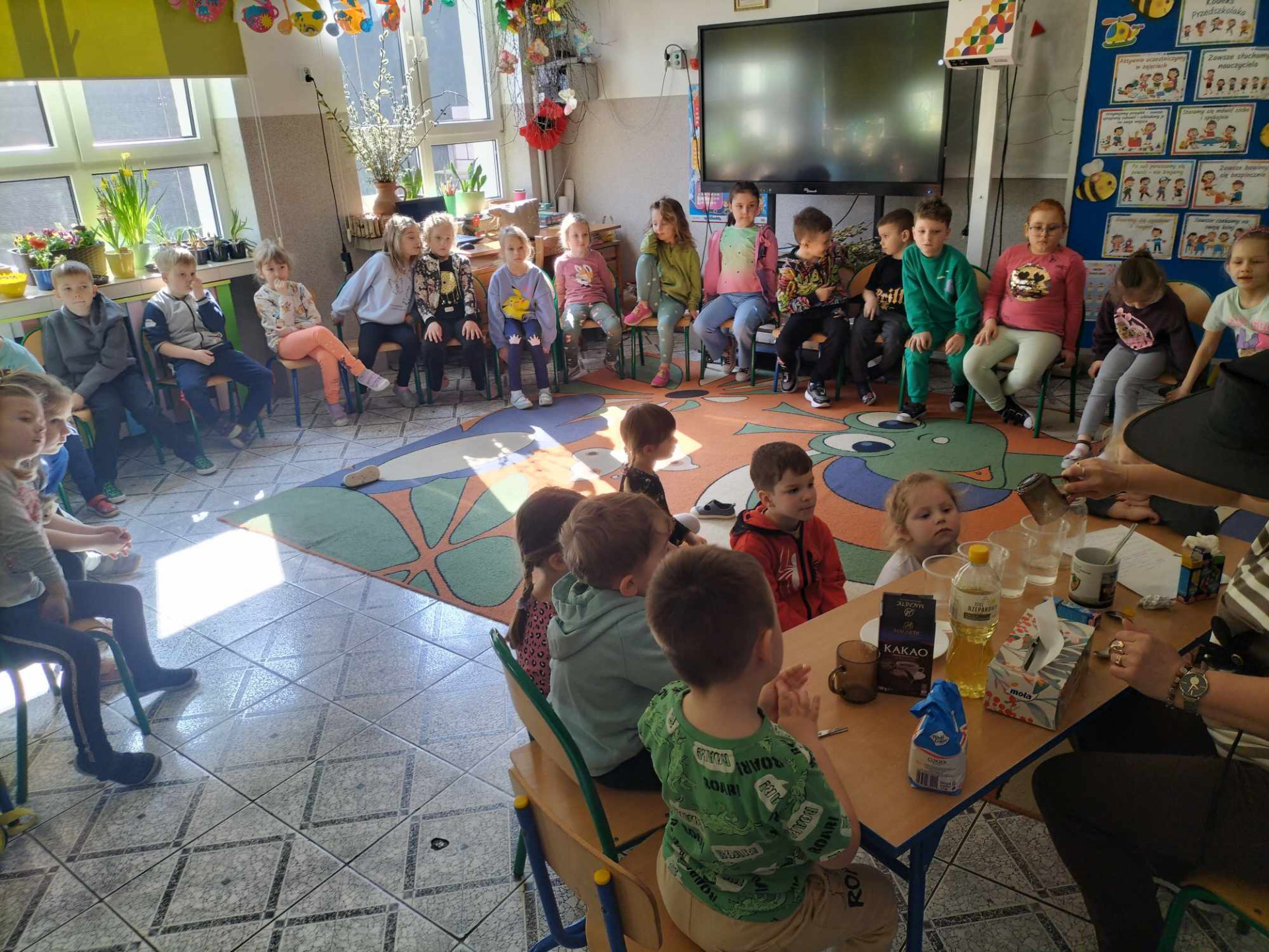 Tego typu zajęcia zachęcały do myślenia, porównywania ,opowiadania. Z wykonanych doświadczeń dzieci czerpały wiele radości. Była to dla nich super zabawa. Głównym celem świętowania było uświadomienie najmłodszym , że woda jest niezbędnym płynem w życiu człowieka , zwierząt oraz roślin. Poznały różne sposoby wykorzystania wody i dowiedziały się, w jaki sposób podczas codziennych czynności ją oszczędzać. W drugiej części zajęć dzieci oglądały film edukacyjny , rozwiązywały quizy i śpiewały piosenki skacząc po kroplach wody . Na zakończenie wszyscy degustowali się najsmaczniejszą i najzdrowszą WODĄ.