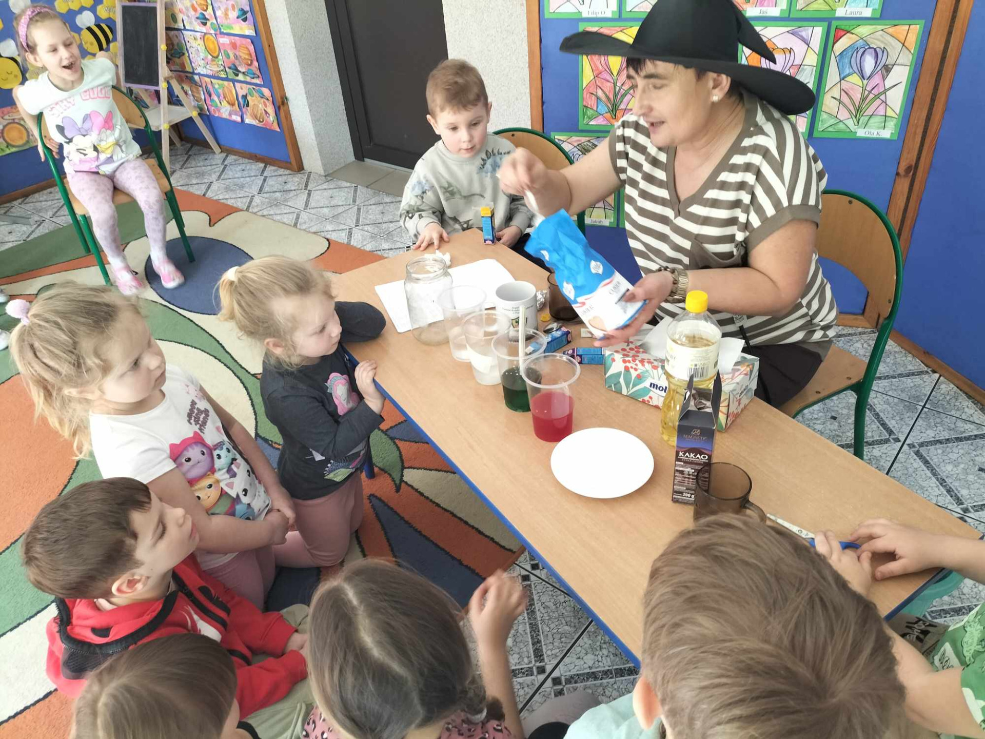 W dniu 25 marca obchodziliśmy w naszym przedszkolu Światowy Dzień Wody. Z tej okazji postanowiliśmy przeprowadzić doświadczenia z wykorzystaniem wody i barwników spożywczych. Dzieci z dużym zainteresowaniem obserwowały cały proces eksperymentu.