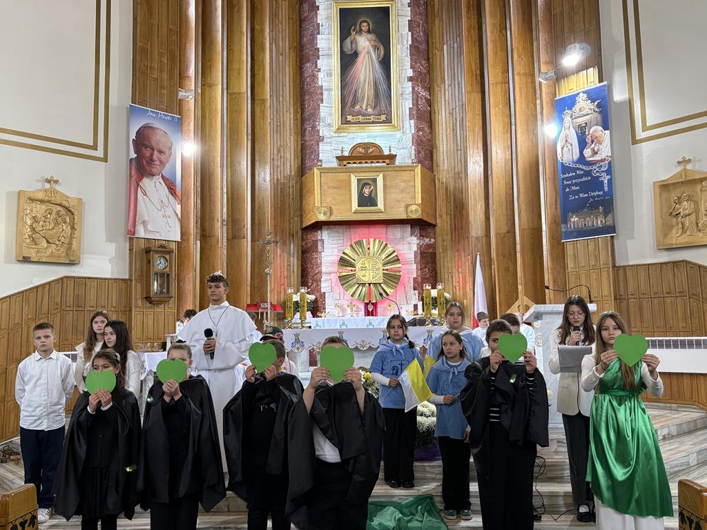 Występ był pięknym świadectwem pamięci o naszym świętym Patronie. Uczniowie z wielkim zaangażowaniem ukazali wartości, które Jan Paweł II pozostawił w swoim nauczaniu – miłość do Boga i drugiego człowieka, odpowiedzialność za słowo i czyny, a przede wszystkim wiarę i nadzieję, że dobro zawsze zwycięża. Zgromadzeni parafianie i rodzice z wdzięcznością oraz wzruszeniem przyjęli występ młodych artystów.
