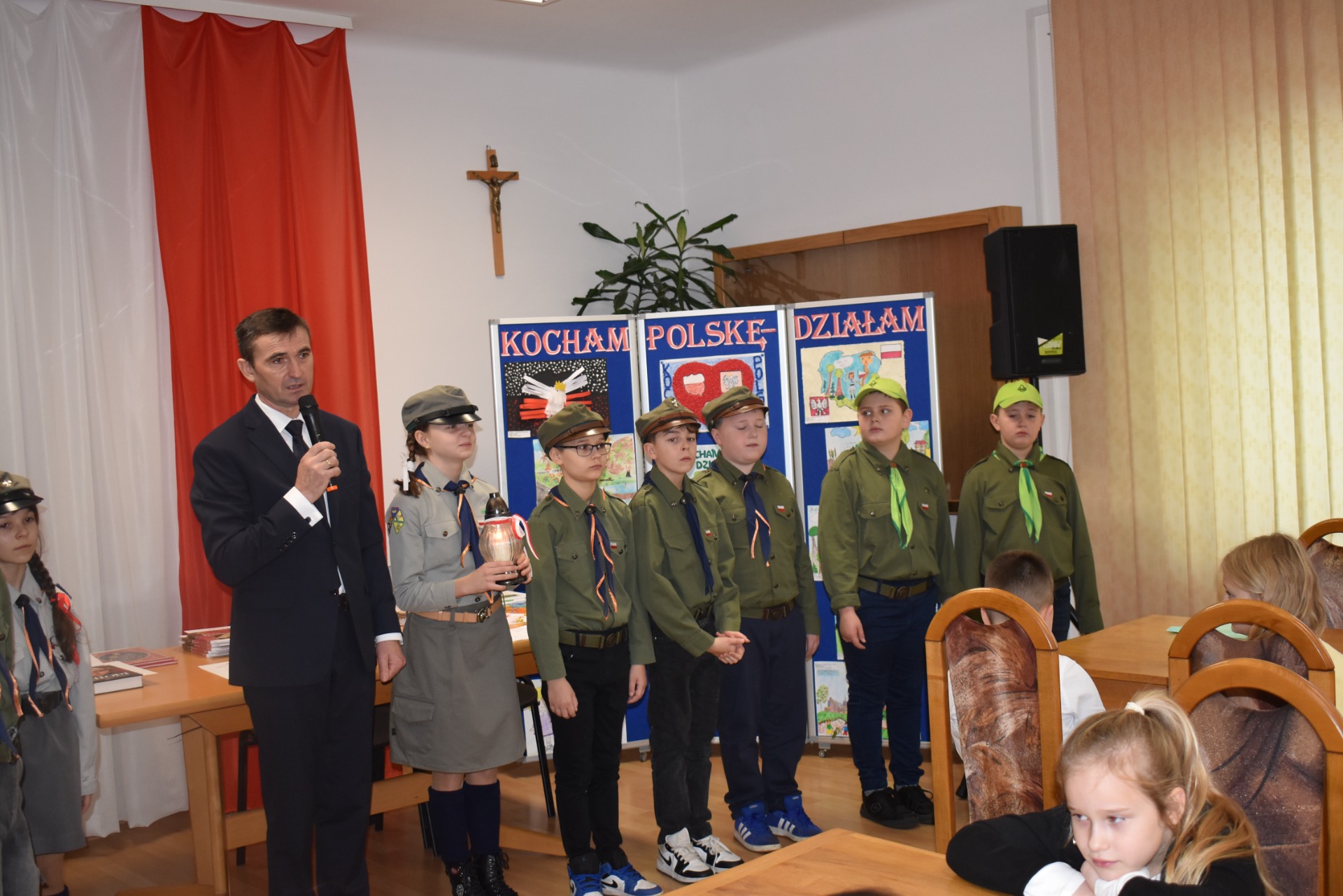 Uroczystość rozpoczął montaż słowno-muzyczny przygotowany przez harcerzy, wprowadzający zebranych w refleksyjny, patriotyczny nastrój.